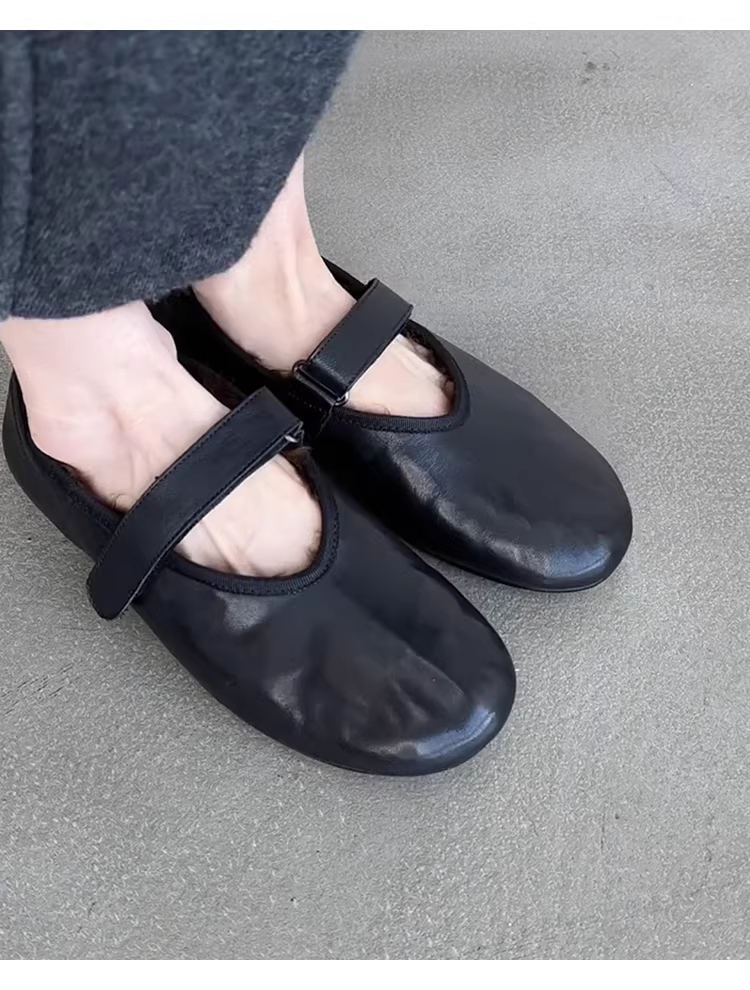 Phiên bản da cừu ~ Thiết kế thời trang với lớp lót lông mềm mại, đế mềm thoải mái, giày Mary Jane quai đơn nông dành cho nữ, giày ba lê thời trang và ấm áp.