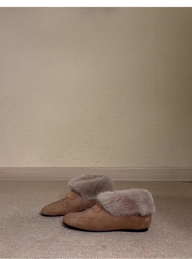 Phiên bản da cừu ~ trang phục ngoài trời thời trang và đa năng, giày đi tuyết ấm áp lót lông cừu dành cho nữ, giày bốt cotton lười đi dễ dàng, kiểu dáng đơn giản, cổ sâu
