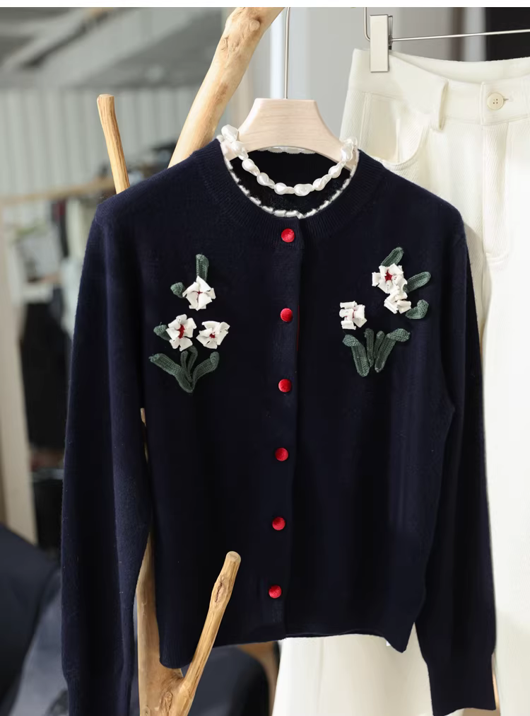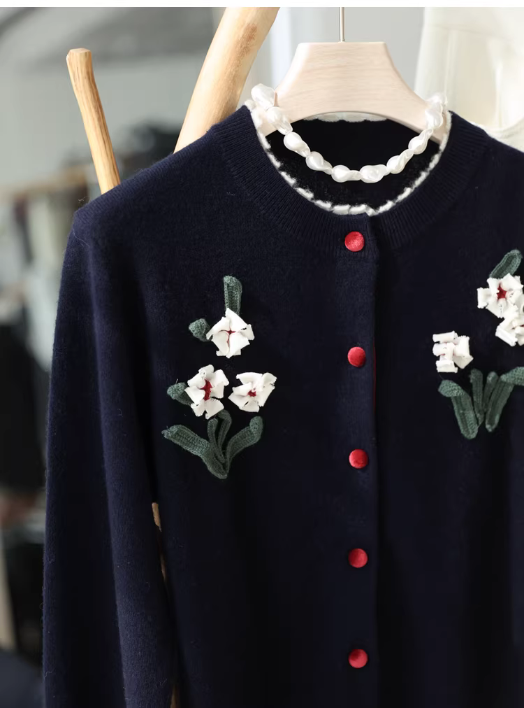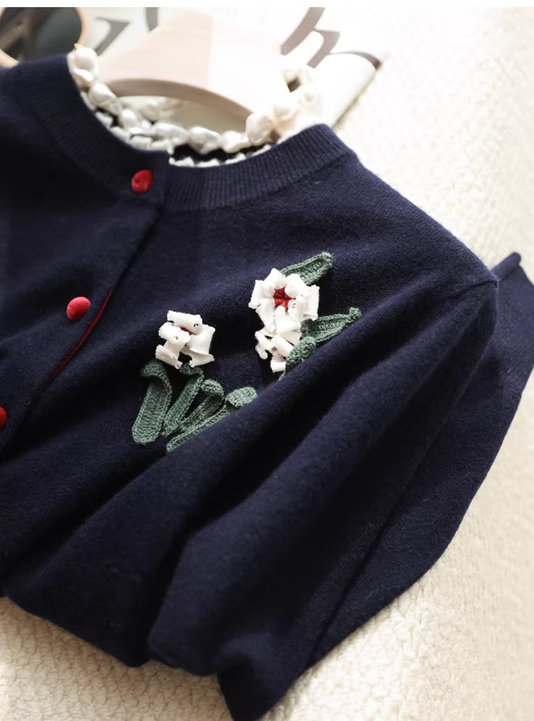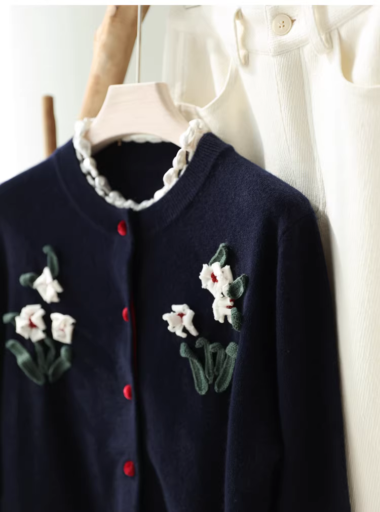 Phong cách của Lưu Văn! Áo len móc 3D thủ công 3K+ 100% len dệt kim dày dặn dành cho nữ mùa thu đông