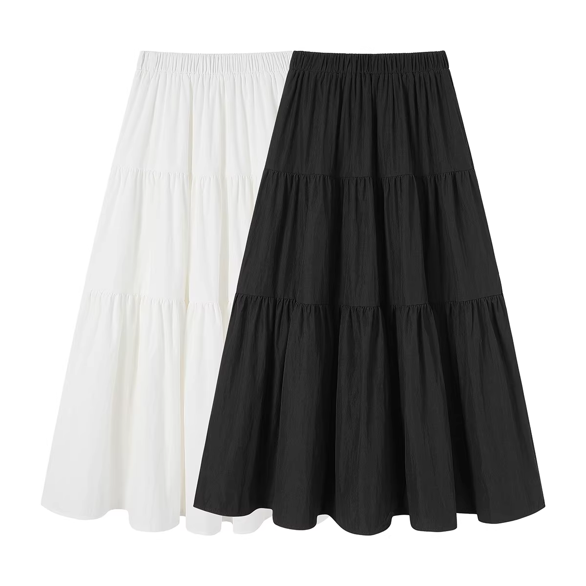 - Phong cách nhẹ nhàng, chân váy đen đa năng, phong cách mới mùa hè dành cho nữ, váy xếp tầng chữ A thon gọn eo