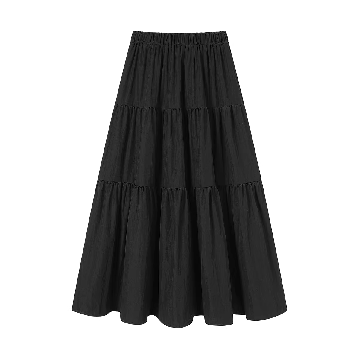 Phong cách nhẹ nhàng, chân váy đen đa năng, phong cách mới mùa hè dành cho nữ, váy xếp tầng chữ A thon gọn eo