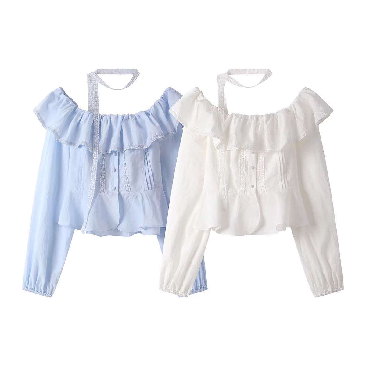 Phong cách Pháp, dịu dàng và thuần khiết, độc đáo và siêu xinh, áo ngắn trễ vai, áo nữ mùa xuân hè hot girl