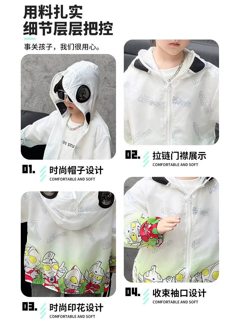 Quần áo chống nắng Ultraman cho bé trai, áo khoác chống tia cực tím mùa hè cho bé trai, quần áo mùa hè cho trẻ em, quần áo điều hòa, nhẹ cho mùa hè