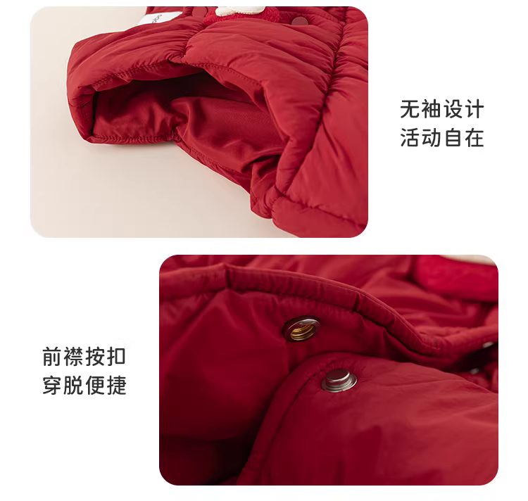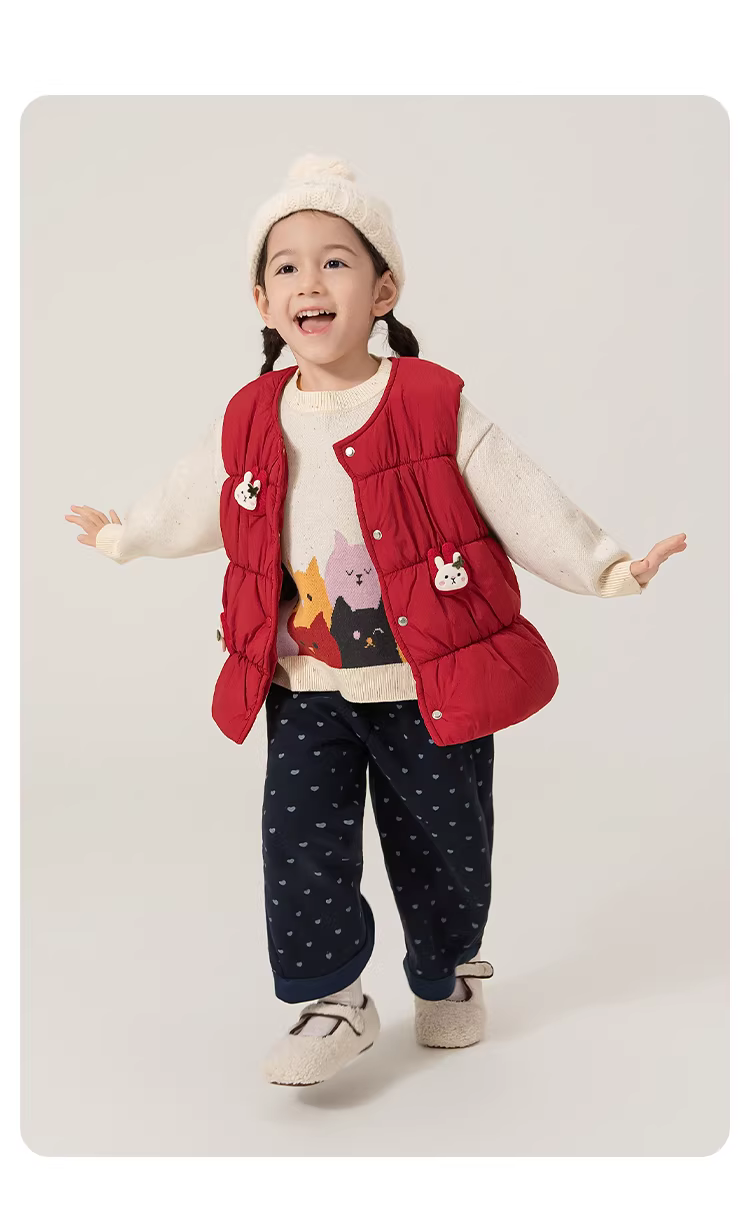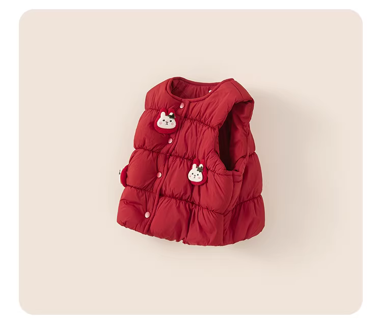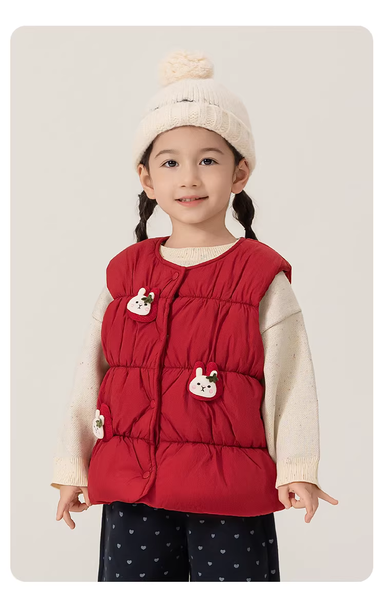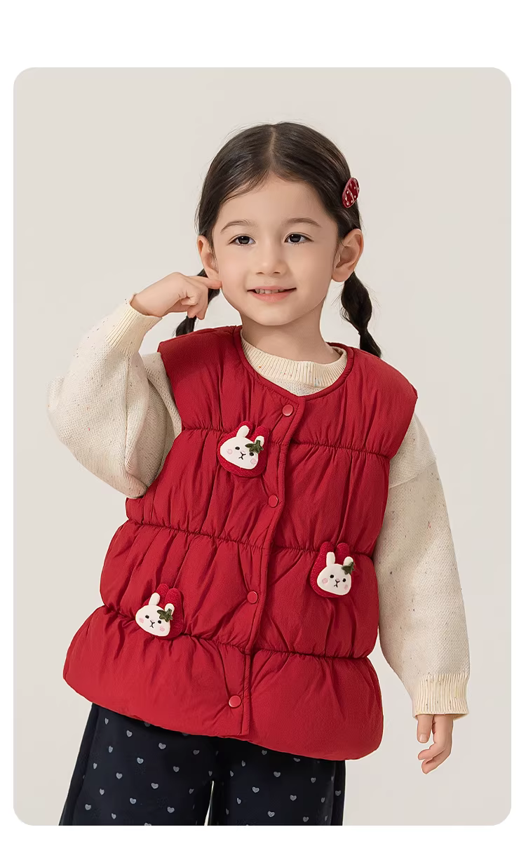- Quần áo cotton bé gái INSbobo thu đông 2025, áo gile đỏ mùa đông dày dặn cho bé