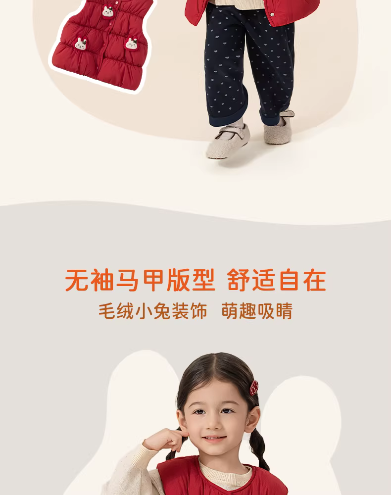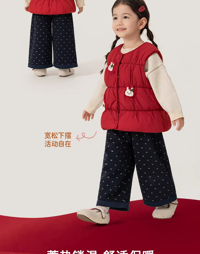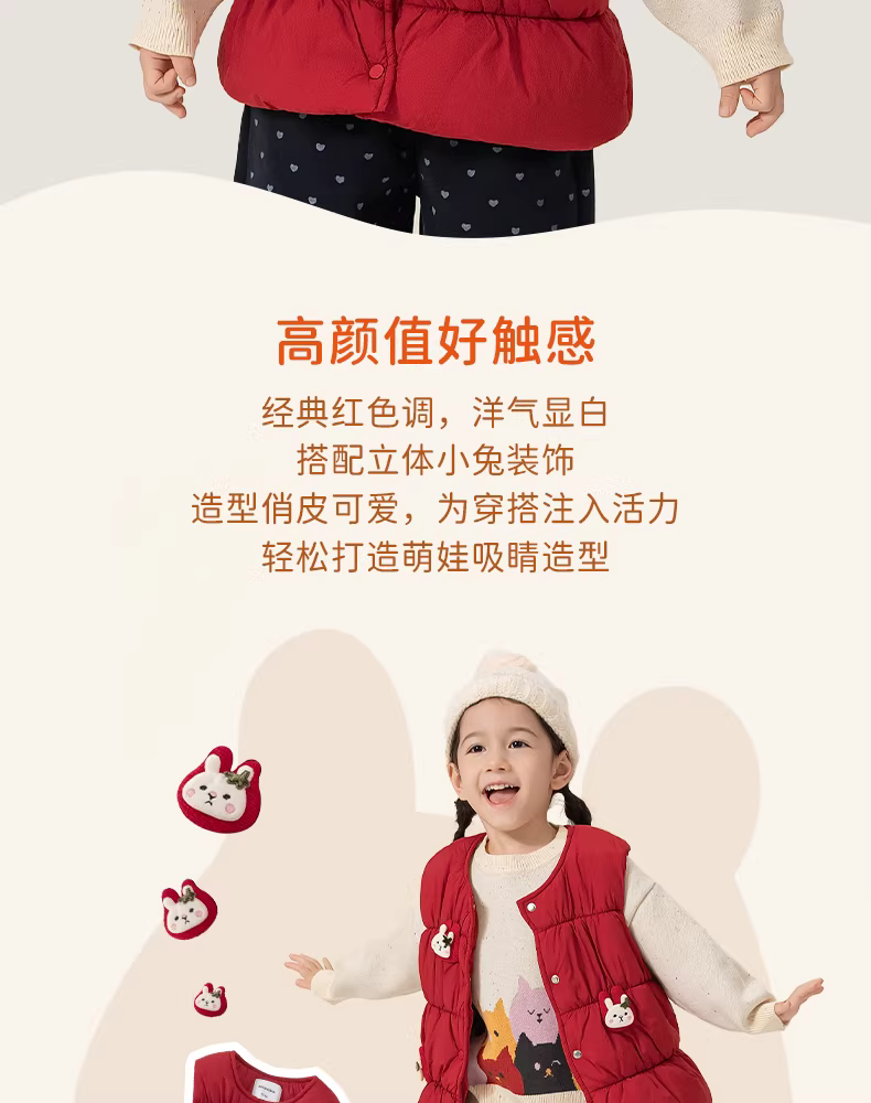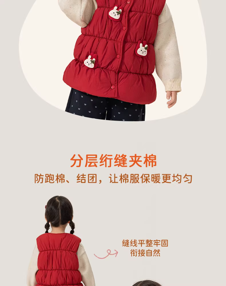 - Quần áo cotton bé gái INSbobo thu đông 2025, áo gile đỏ mùa đông dày dặn cho bé