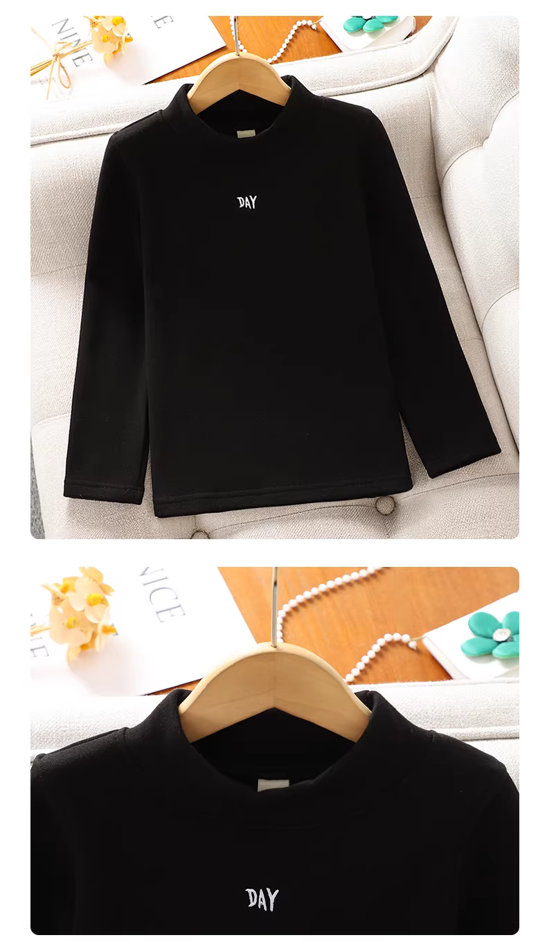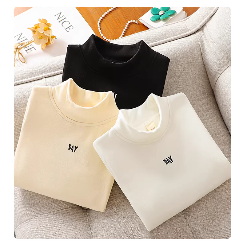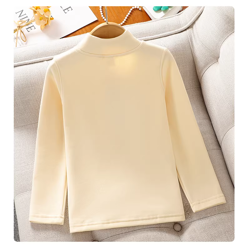 - Quần áo mùa đông lớp lót cho bé gái 2025 Áo thun có cổ cao nửa cổ lót lông cừu mới dành cho trẻ em Áo thun cho bé gái Quần lót giữ nhiệt ấm áp mùa thu đông