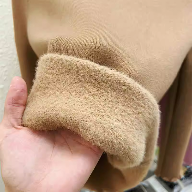 - Quần áo nữ châu Âu giảm giá có thương hiệu, cổ cao nửa cổ có viền xếp nếp, lớp lót bên trong bằng lông cừu tích hợp, dày dặn để giữ ấm, áo len bên trong.
