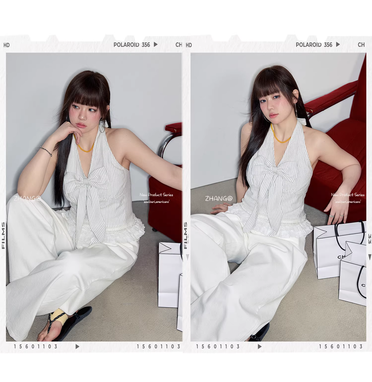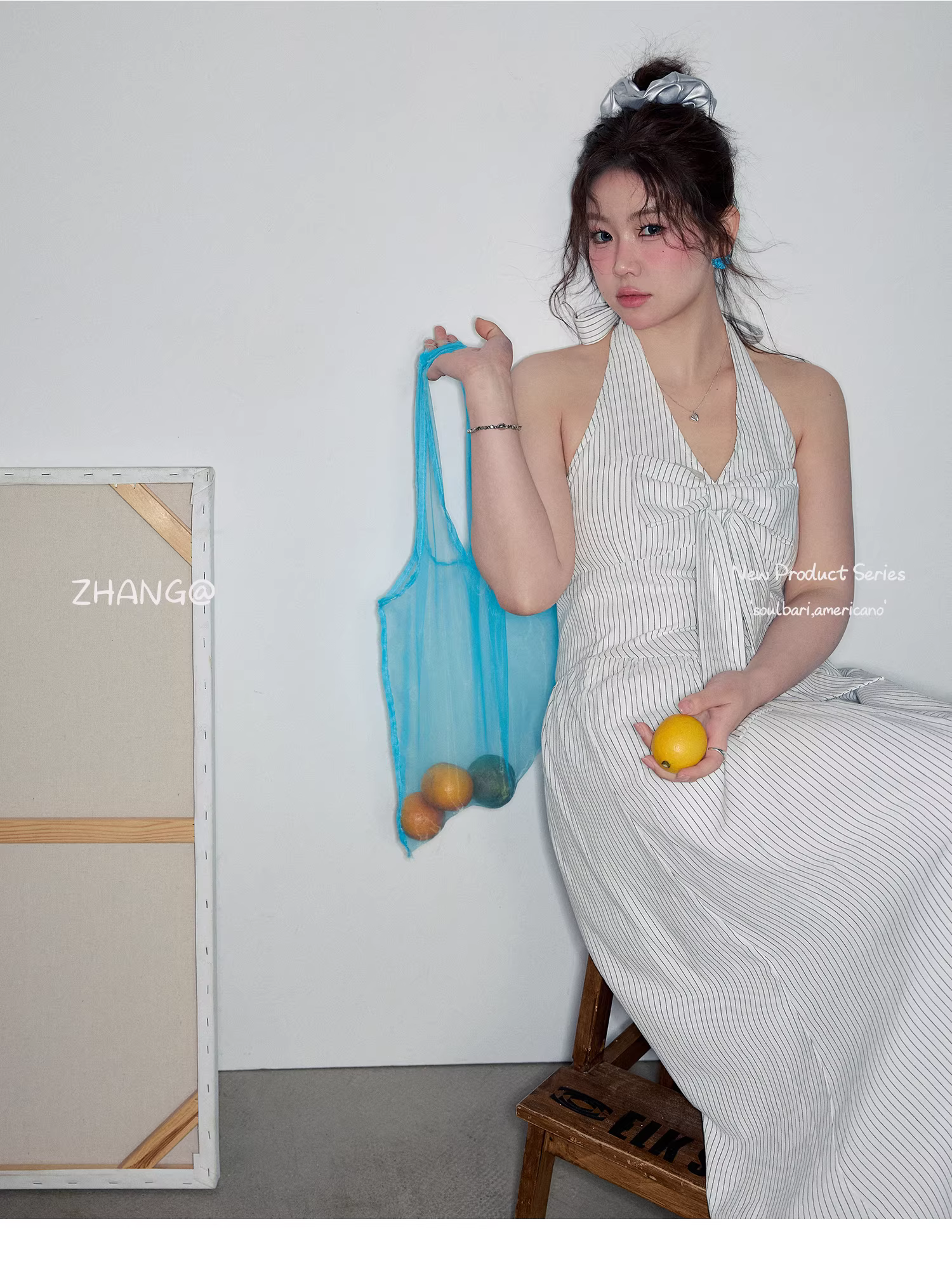 Quần áo nữ cỡ lớn dành cho các cô gái hơi mũm mĩm, kiểu dáng ôm sát phong cách Hàn Quốc, cạp cao, váy sọc dọc cổ yếm phong cách đi nghỉ.