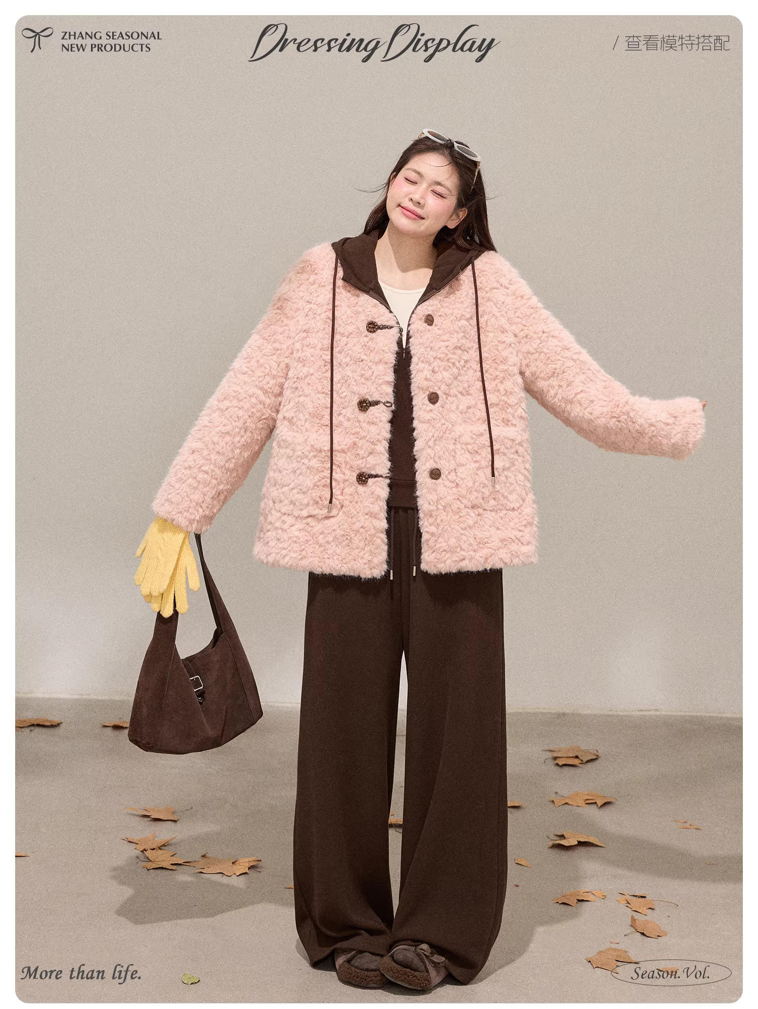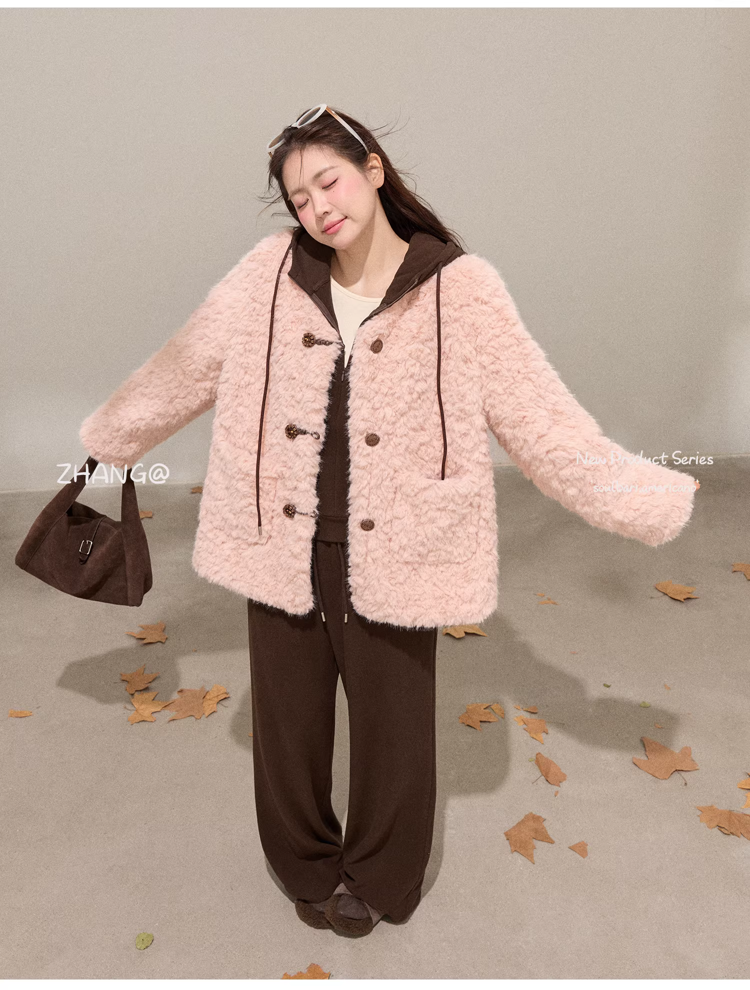 - Quần áo nữ cỡ lớn dành cho người lớn, áo khoác len cừu màu hồng có túi đôi phong cách Hàn Quốc, kiểu dáng thời trang.