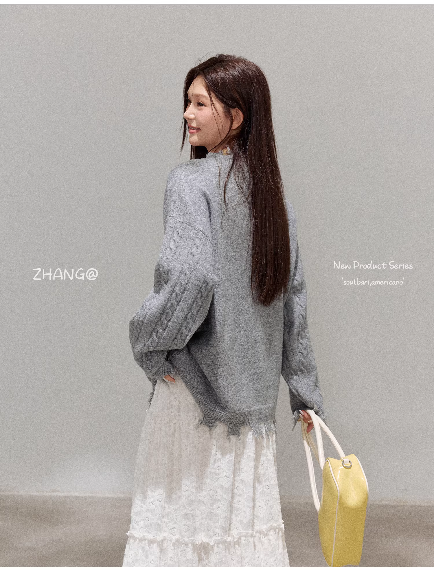 Quần áo nữ cỡ lớn dành cho người lớn, bộ áo len màu xám dáng ôm mùa thu đông với chân váy trắng kiểu ballet thanh lịch.