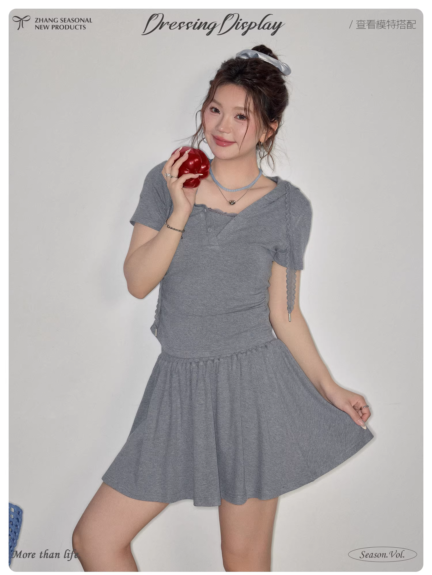 - Quần áo nữ cỡ lớn dành cho người lớn, bộ áo thun ngắn tay màu xám ôm dáng và chân váy kiểu dáng mùa hè mới.