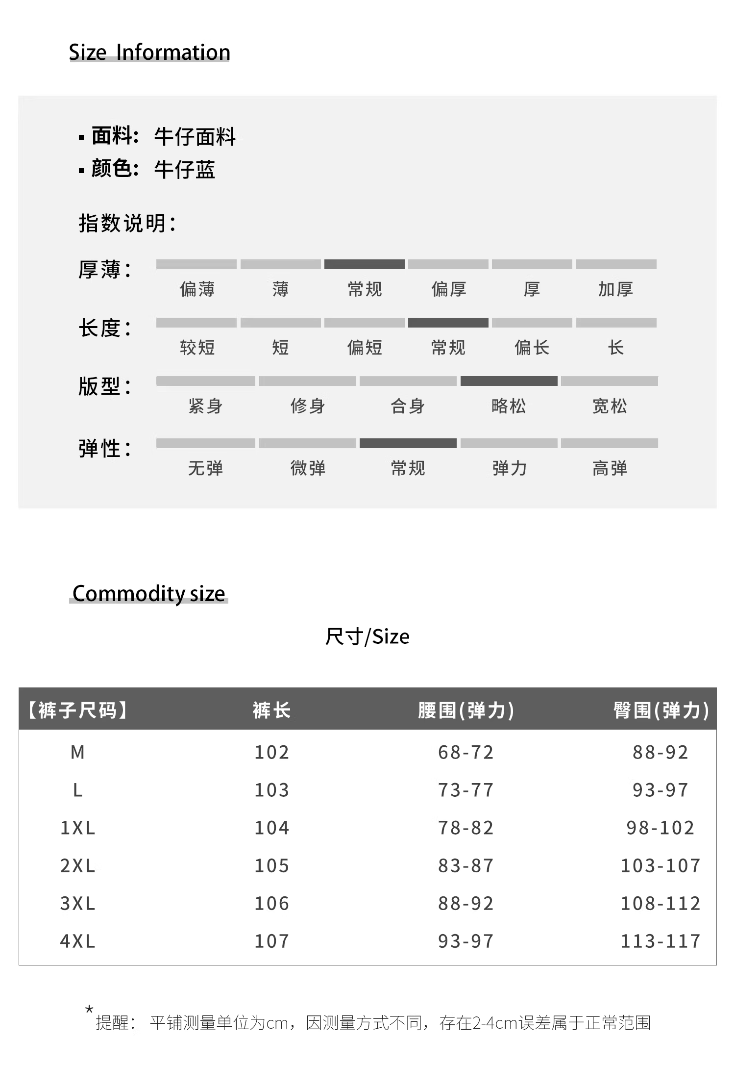 - Quần áo nữ cỡ lớn dành cho người lớn, chất liệu denim đã qua xử lý, kiểu dáng ôm dáng, che phủ cơ thể, quần hơi cay, quần jean cạp cao.