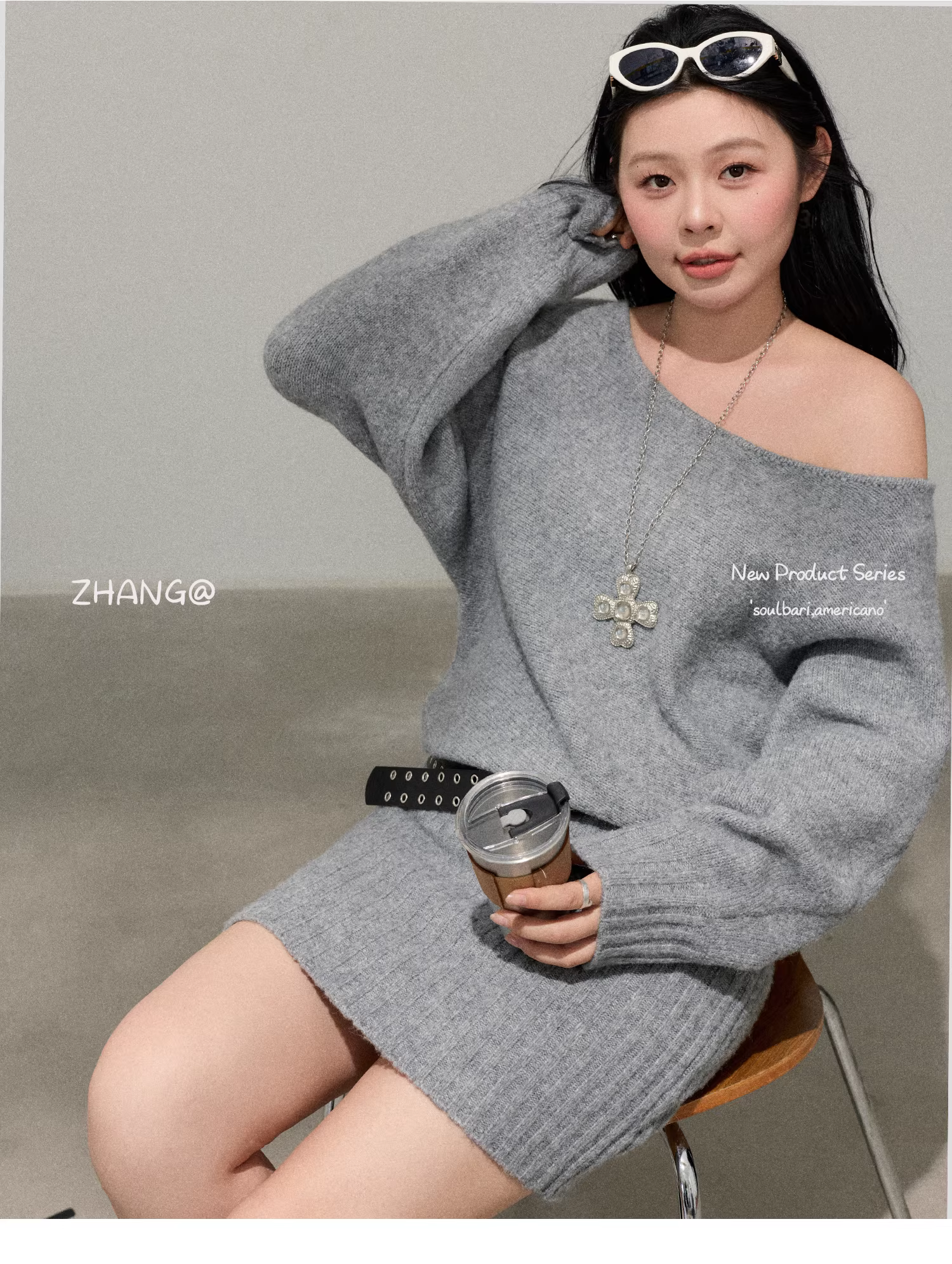 - Quần áo nữ cỡ lớn dành cho người lớn, phụ nữ hơi mũm mĩm, áo len ngắn kiểu dáng lười biếng màu xám kiểu Hàn Quốc mới mùa thu.