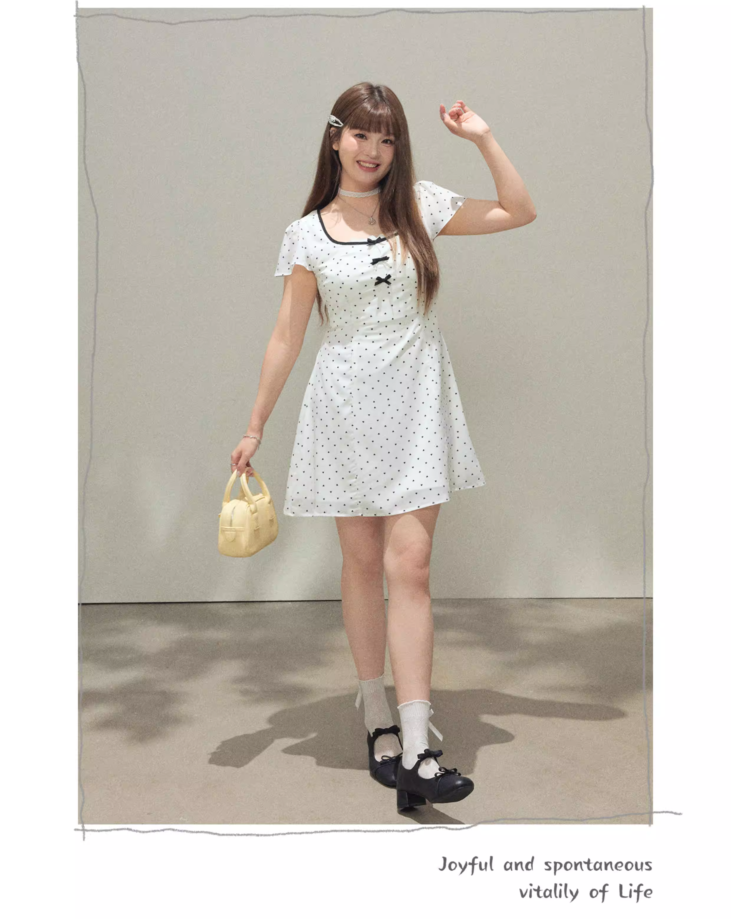 - Quần áo nữ cỡ lớn dành cho người lớn, váy chấm bi kiểu cổ điển thanh lịch và tôn dáng, váy ngắn tay màu trắng dịu dàng.