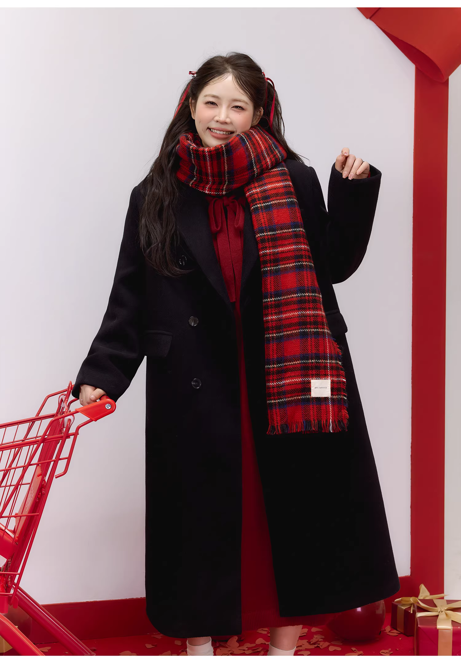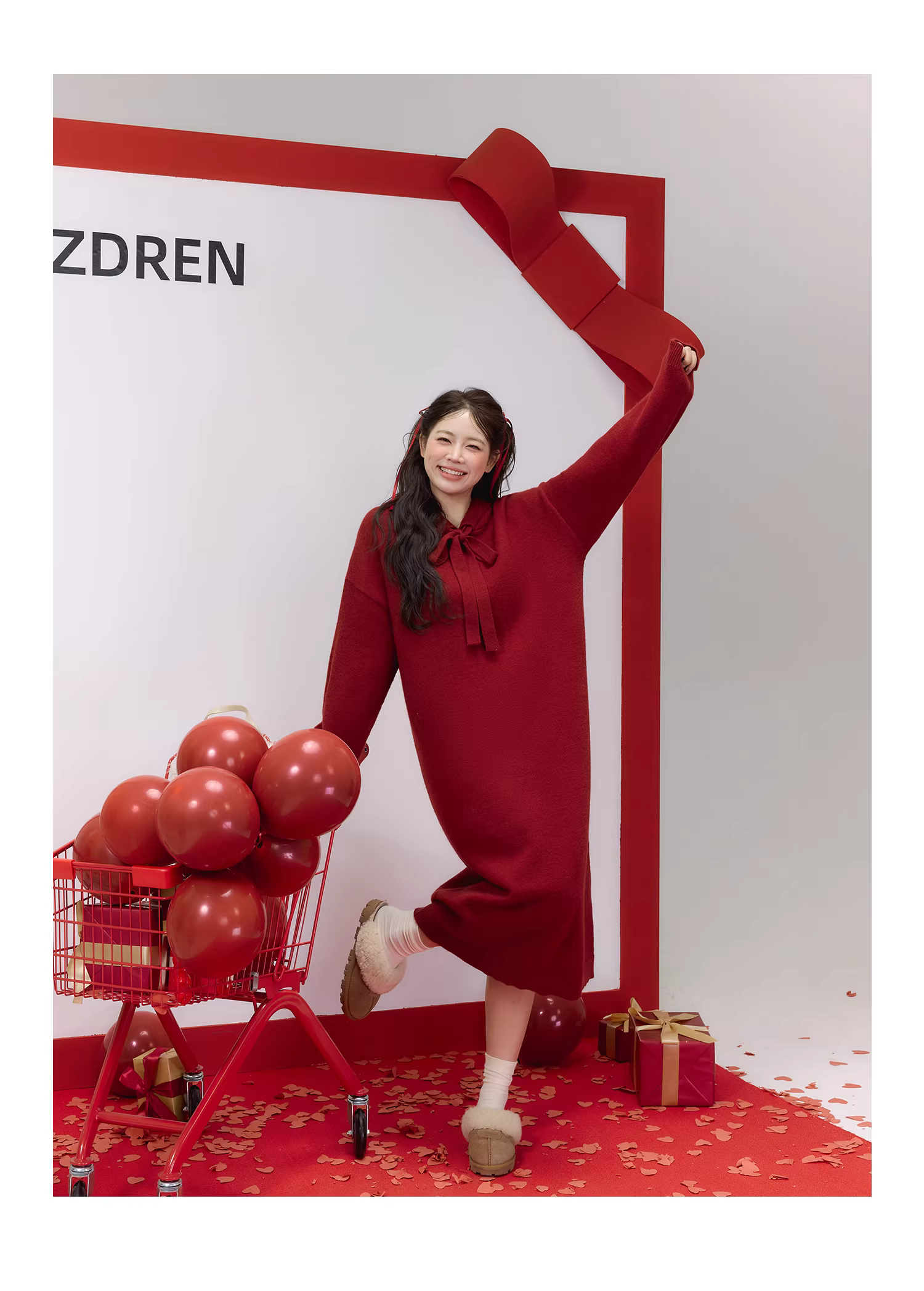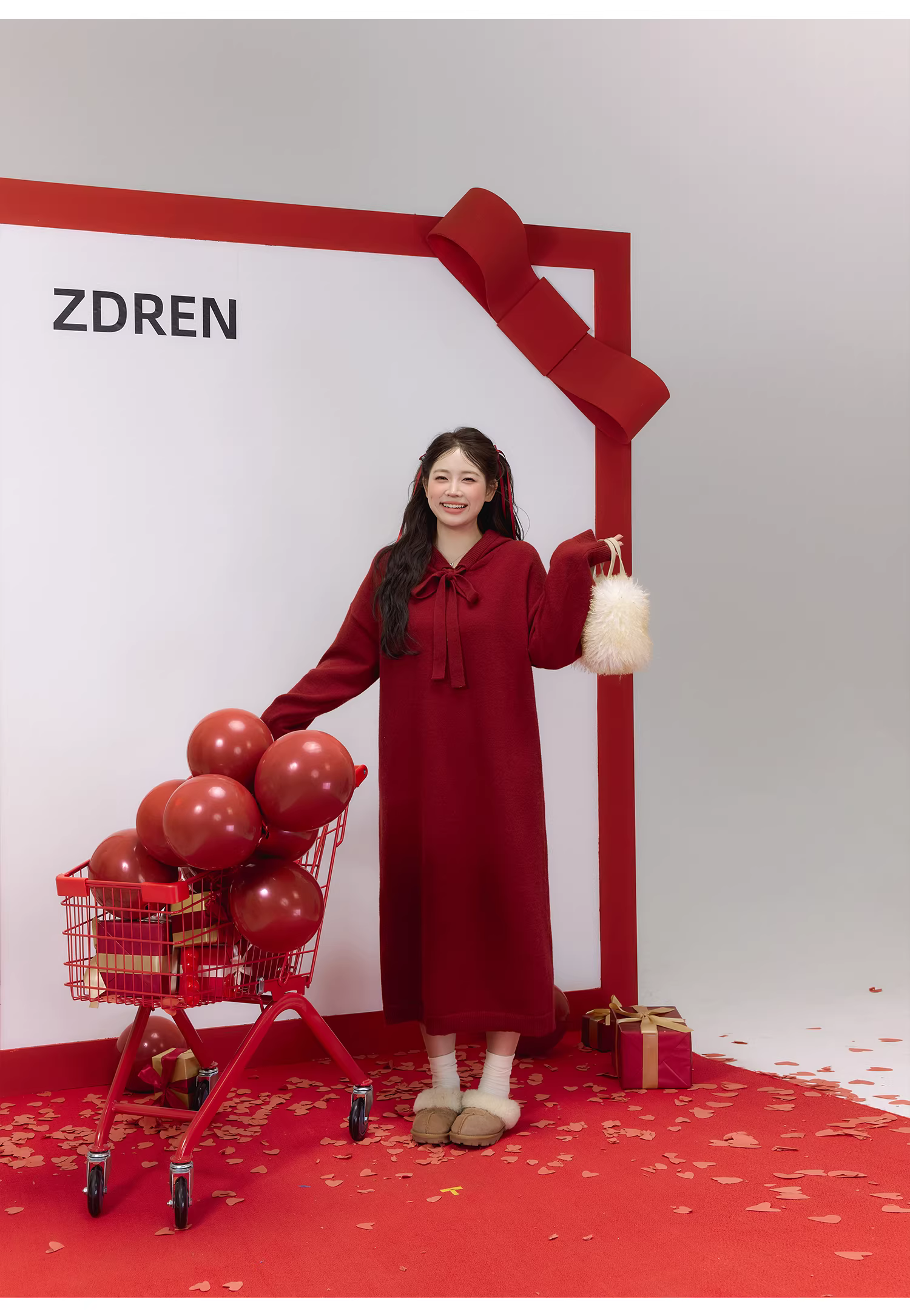 - Quần áo nữ cỡ lớn dành cho người lớn, váy đỏ thon gọn cho năm mới, váy len thẳng kiểu lười biếng phong cách Hàn Quốc.