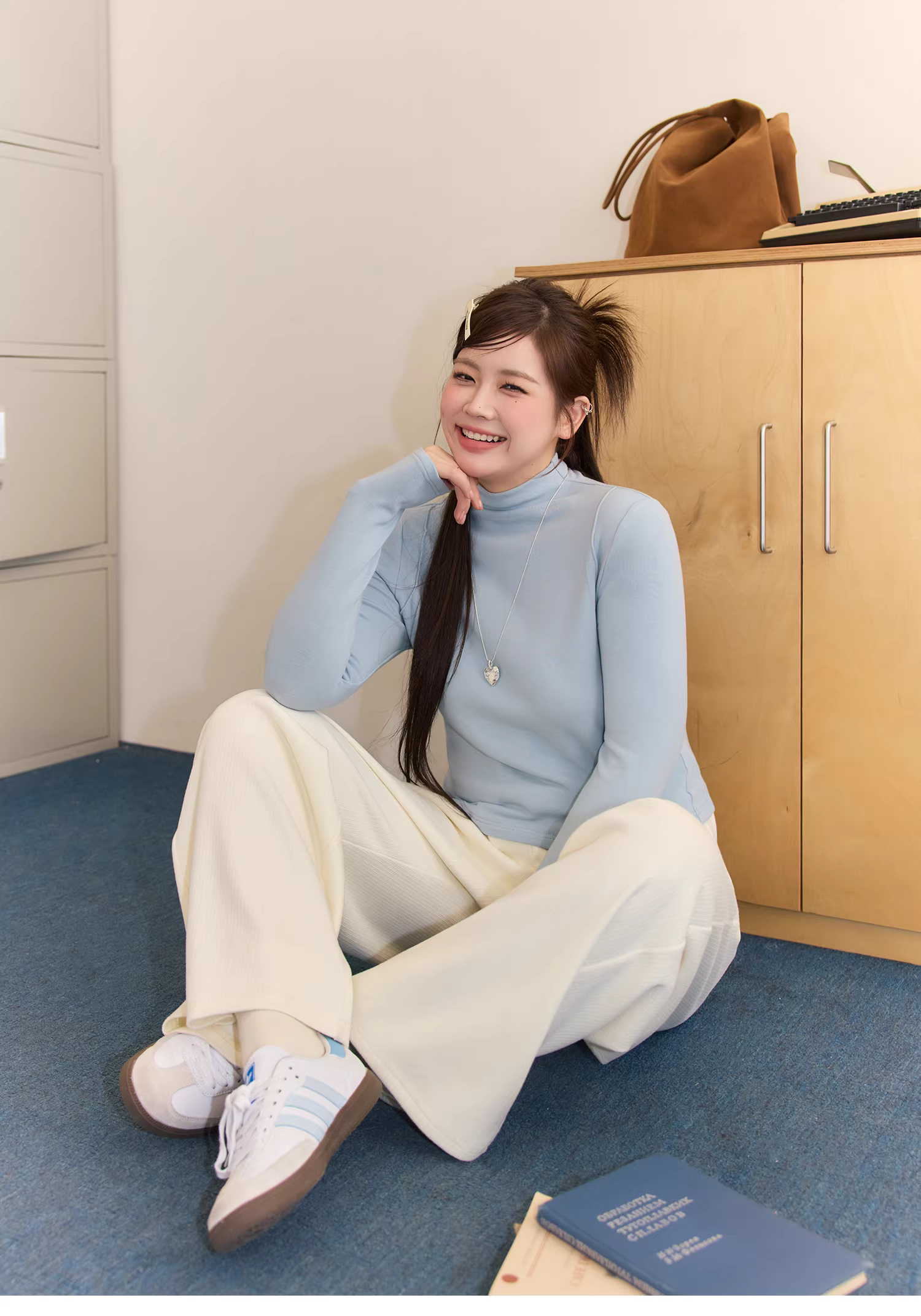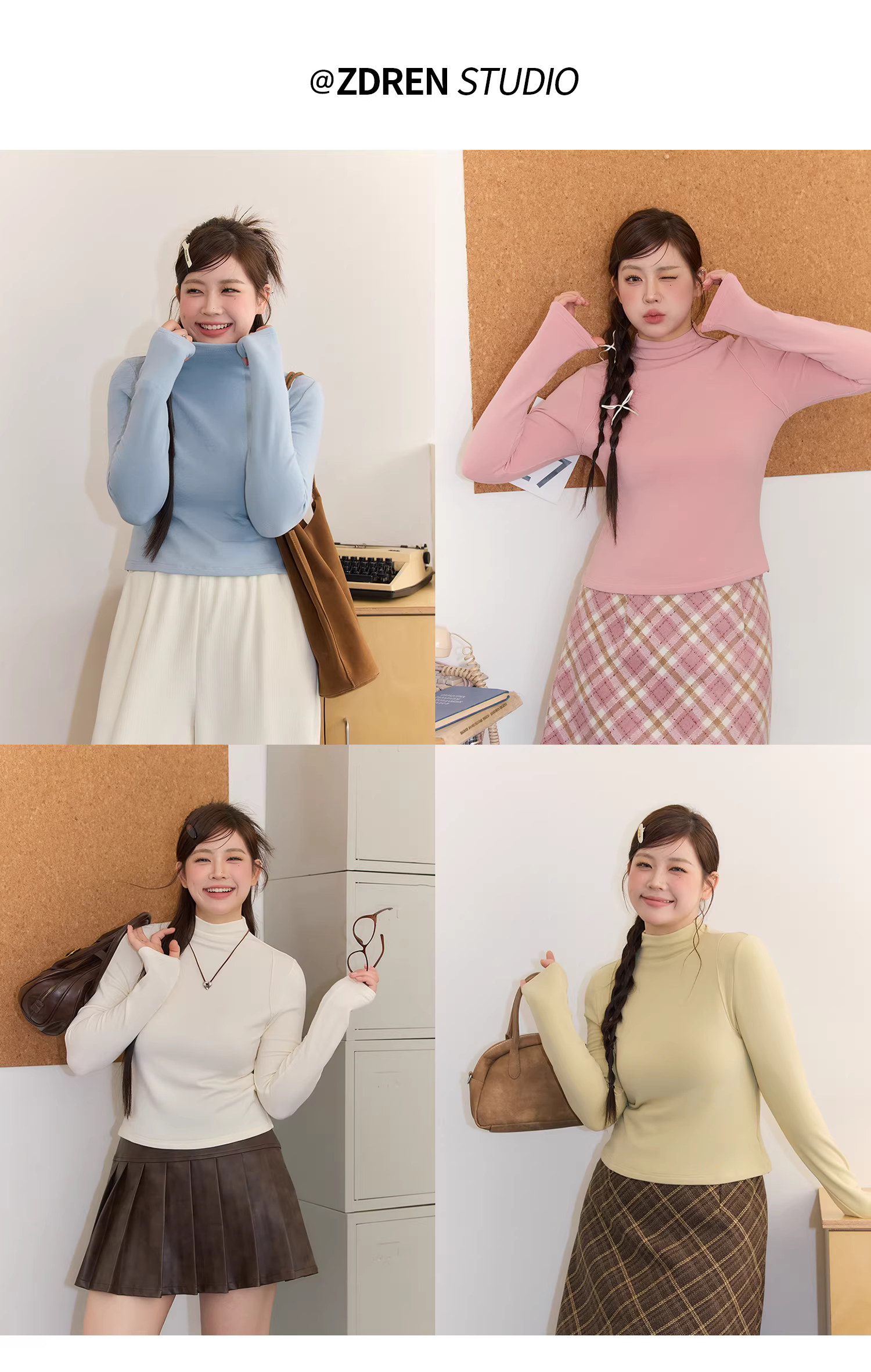 Quần áo nữ cỡ lớn mùa thu đông của Zhang Daren, áo sơ mi dệt kim dopamine hơi mũm mĩm, áo thun cổ cao ôm sát phong cách Hàn Quốc.