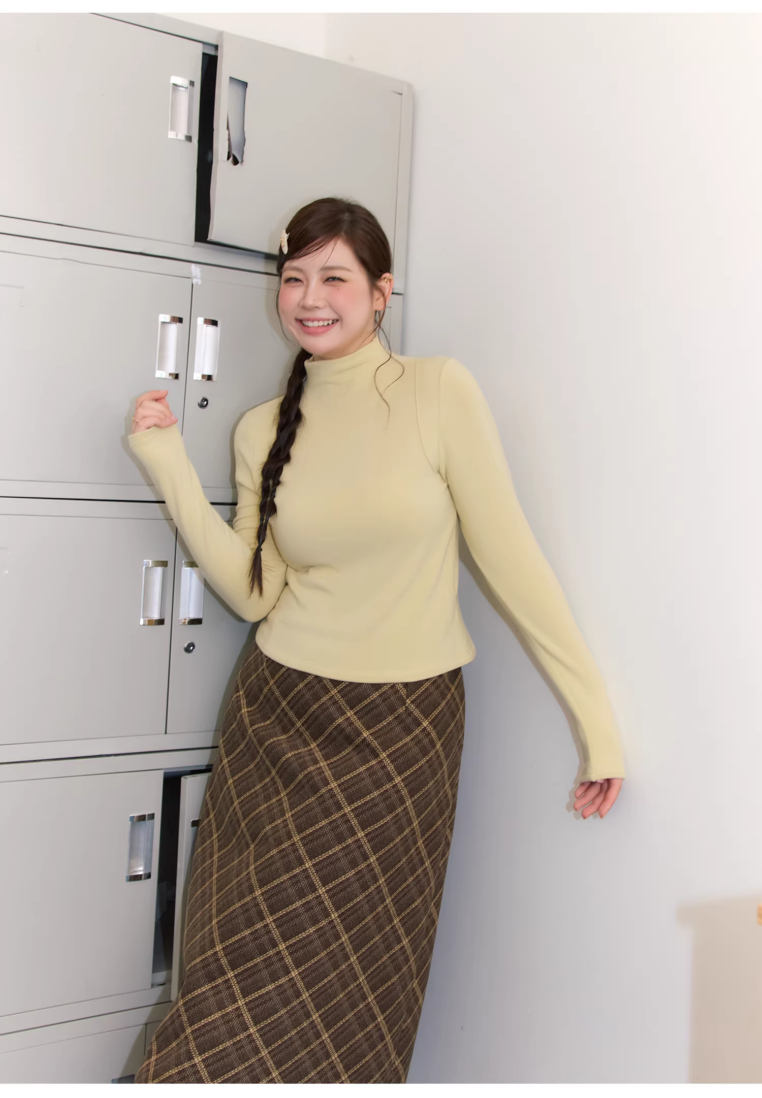 - Quần áo nữ cỡ lớn mùa thu đông của Zhang Daren, áo sơ mi dệt kim dopamine hơi mũm mĩm, áo thun cổ cao ôm sát phong cách Hàn Quốc.
