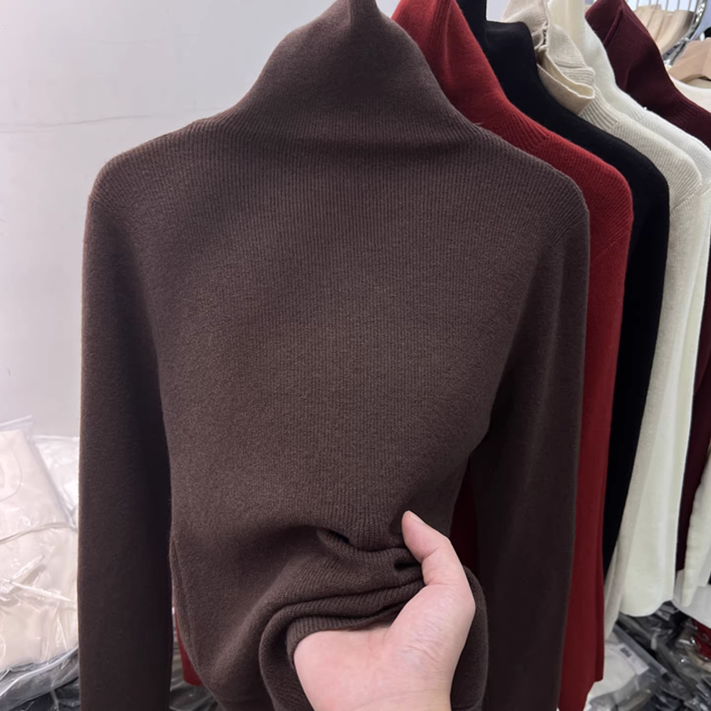Quần áo nữ giảm giá, áo len cổ cao không nhãn mác, kiểu dáng thu đông mới, áo len ôm dáng, thời thượng.