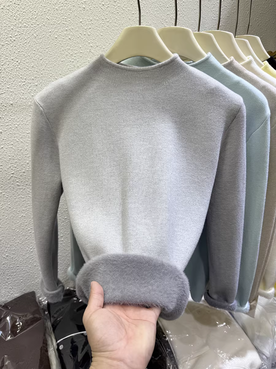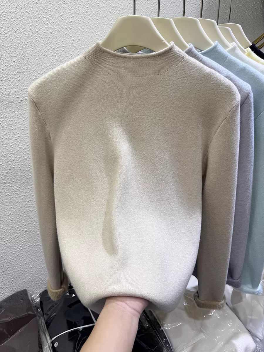 Quần áo nữ giảm giá có thương hiệu, áo len dệt kim một mảnh màu trơn thu đông có nhãn cắt, lớp bên trong sành điệu và ấm áp, áo len dày, hợp thời trang.