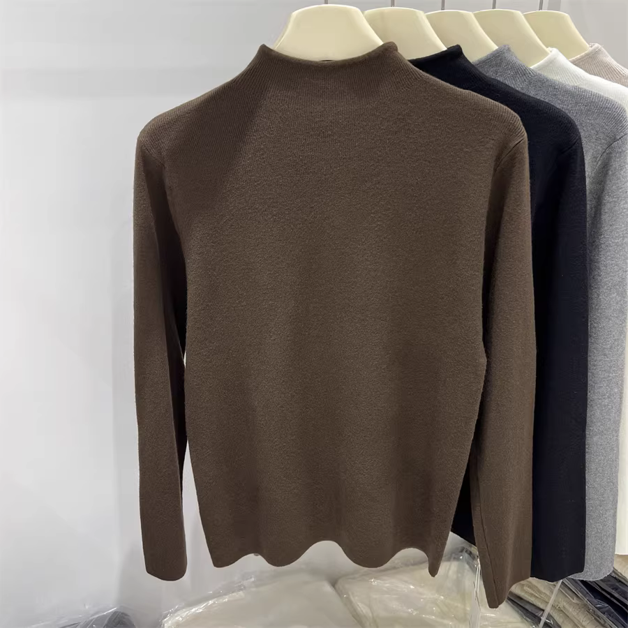 - Quần áo nữ giảm giá có thương hiệu, áo sơ mi dệt kim cổ cao nửa cổ có nhãn cắt, lớp trong mùa thu đông, dáng ôm, áo len giảm béo, áo ấm.
