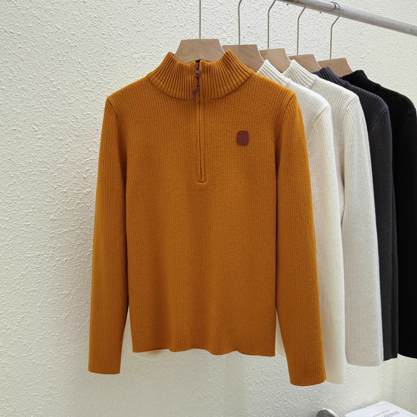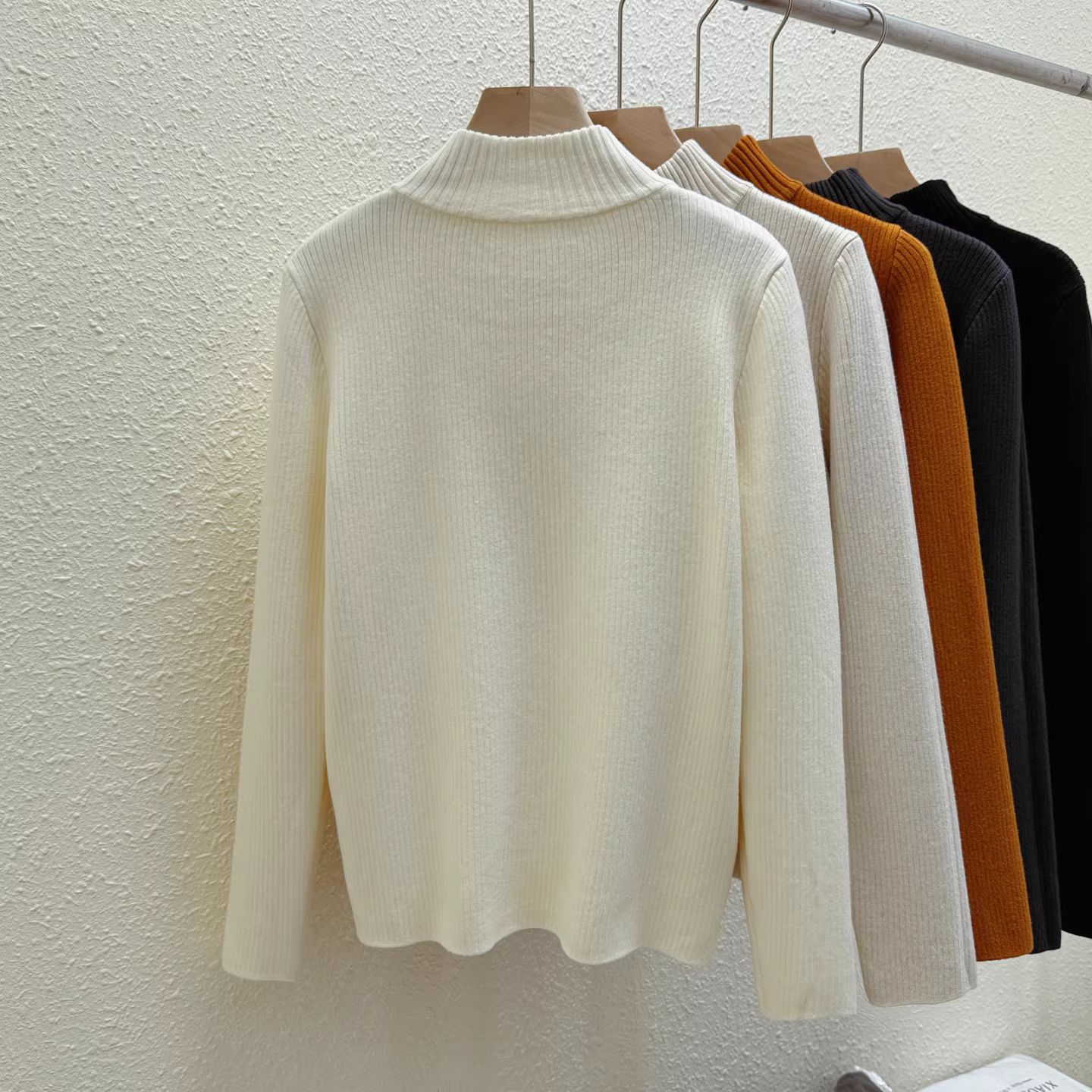 - Quần áo nữ giảm giá có thương hiệu, áo sơ mi dệt kim dày có khóa kéo cổ cao nửa cổ, mặc bên trong mùa đông, áo lông cừu tích hợp giảm béo.