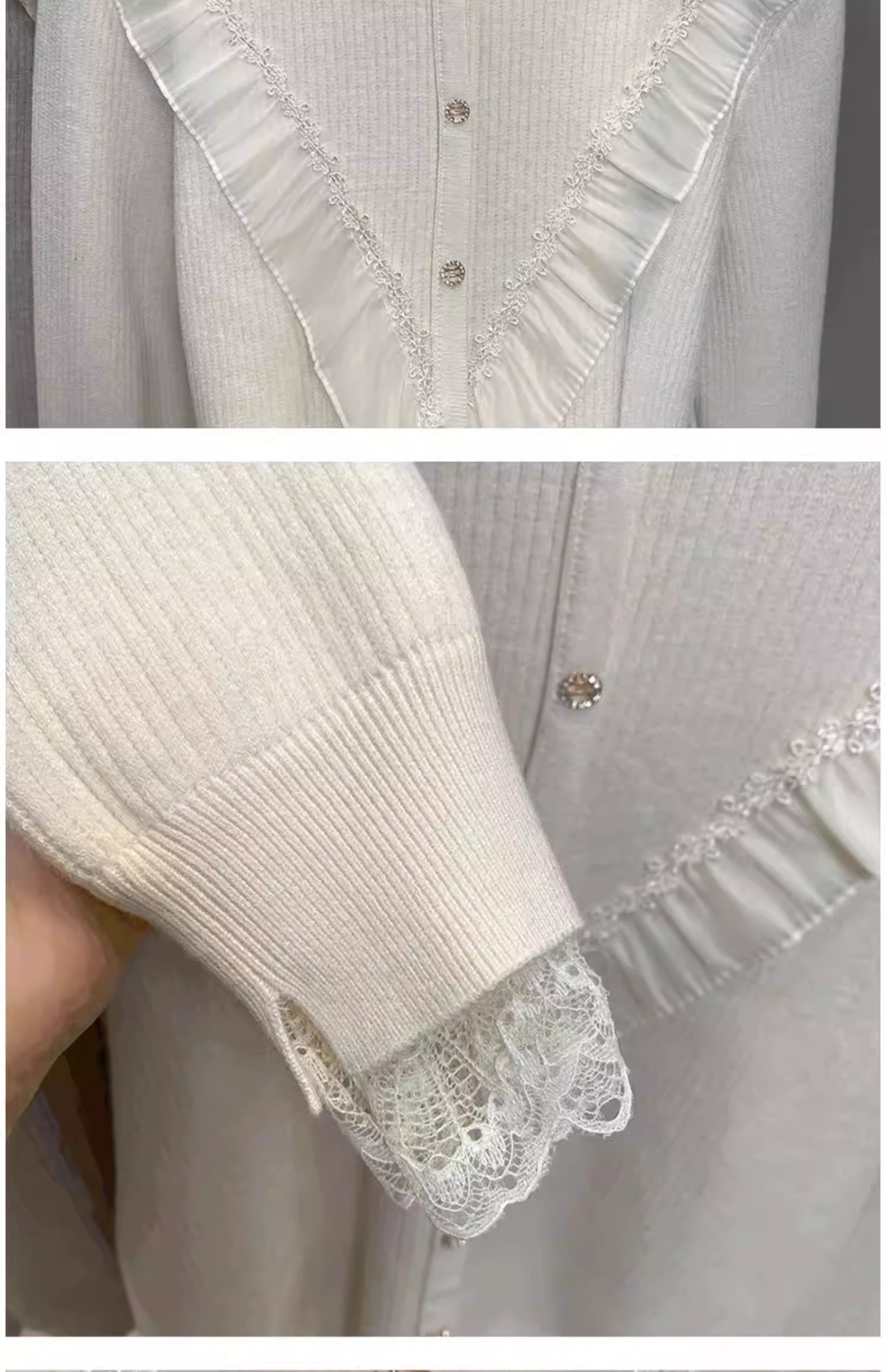 - Quần áo nữ giảm giá có thương hiệu, áo sơ mi dệt kim phối ren cắt nhãn, đồ mặc bên trong mùa thu đông, áo len lông cừu tích hợp giúp giảm béo.