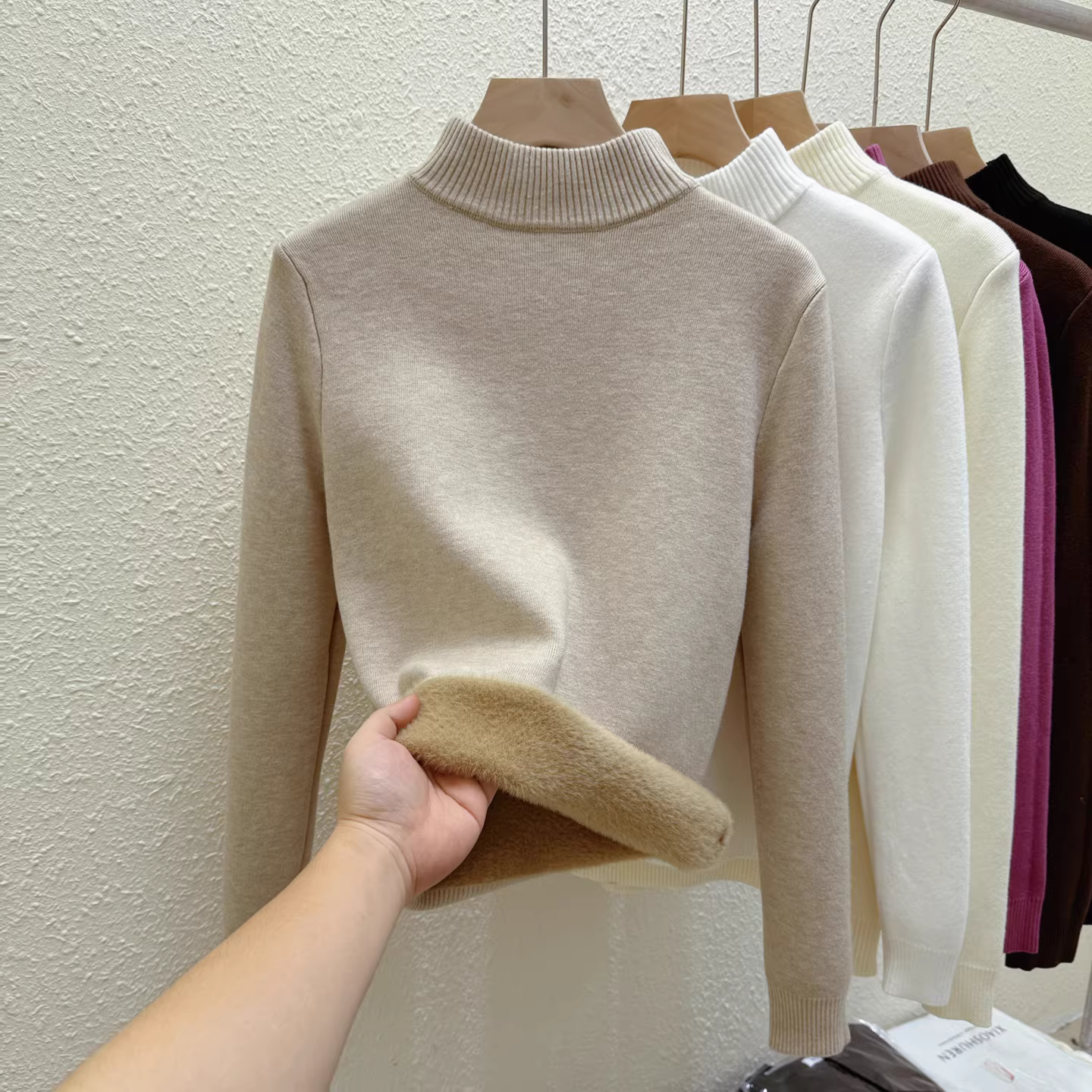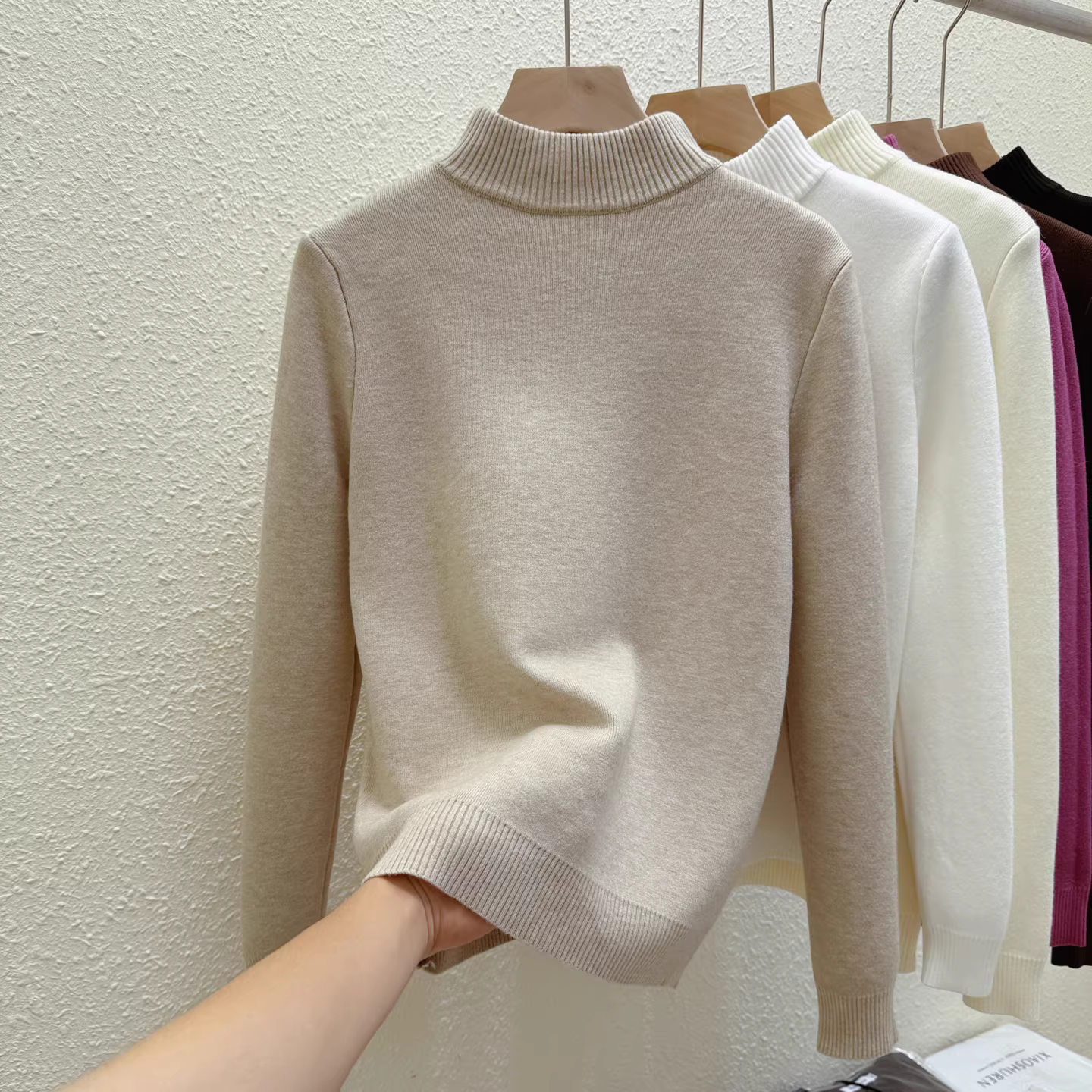 Quần áo nữ giảm giá có thương hiệu, áo thun dệt kim có lớp lót tích hợp, lớp lót bên trong mùa thu đông, áo len màu trơn kiểu dáng thời trang giúp thon gọn.