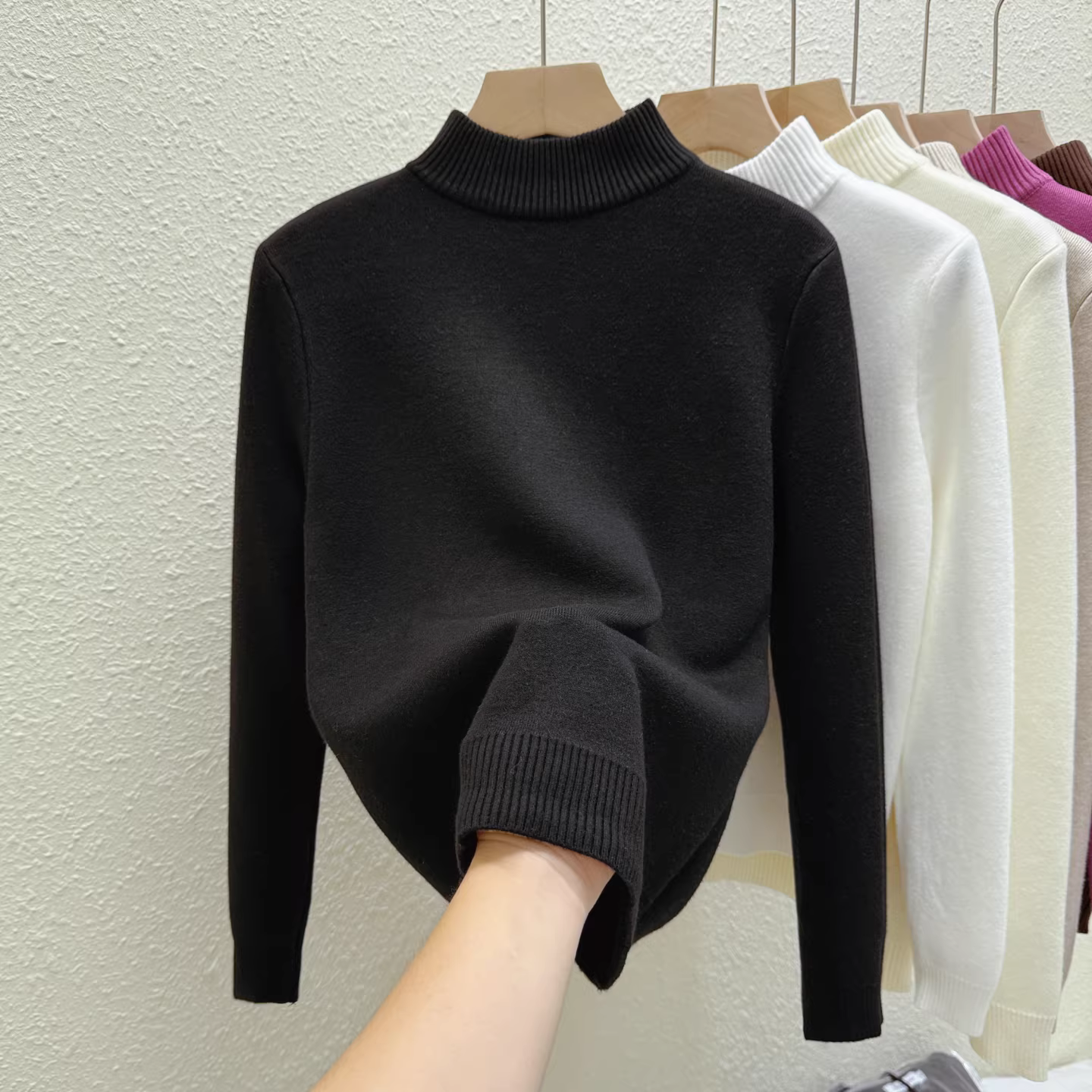 - Quần áo nữ giảm giá có thương hiệu, áo thun dệt kim có lớp lót tích hợp, lớp lót bên trong mùa thu đông, áo len màu trơn kiểu dáng thời trang giúp thon gọn.