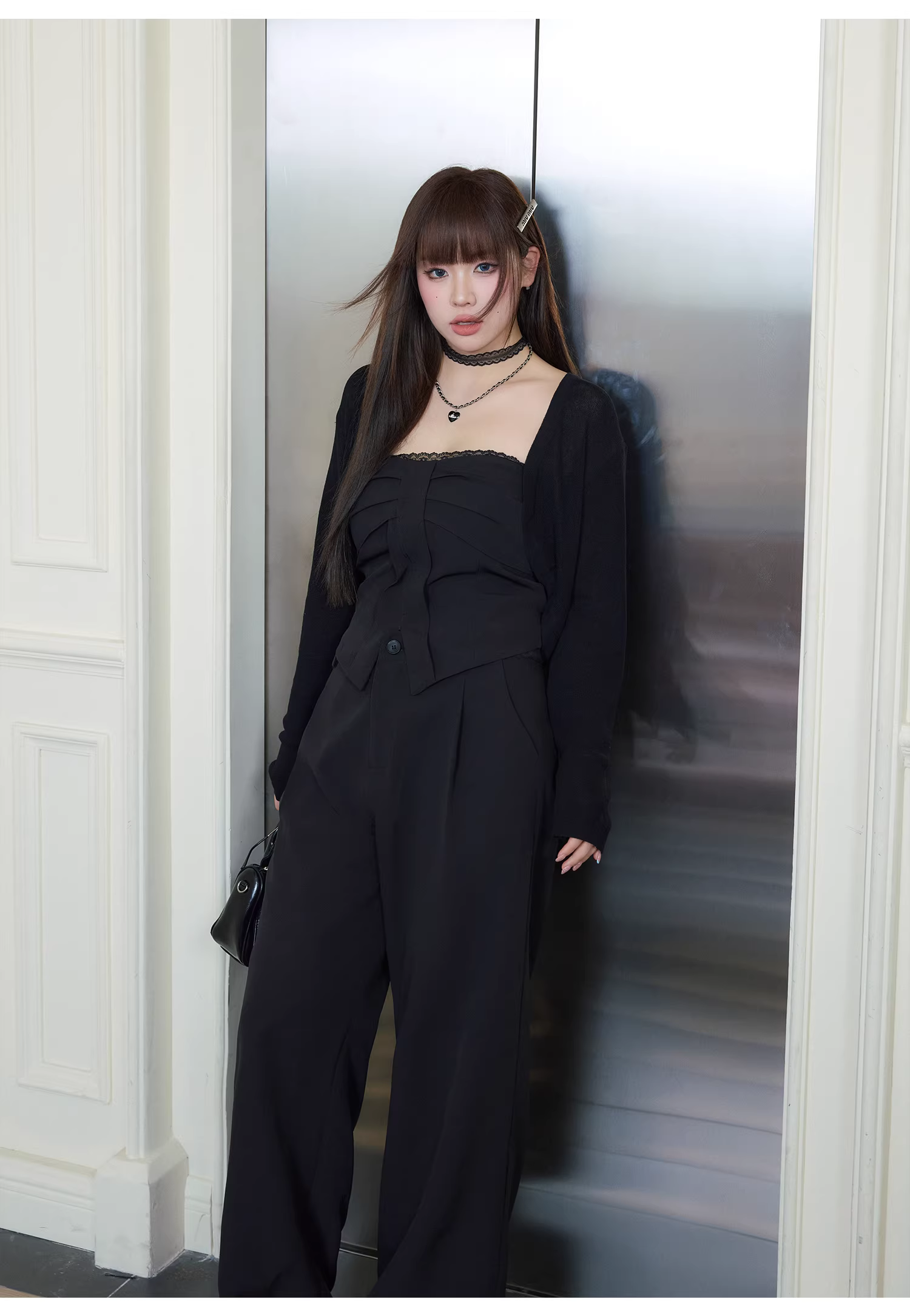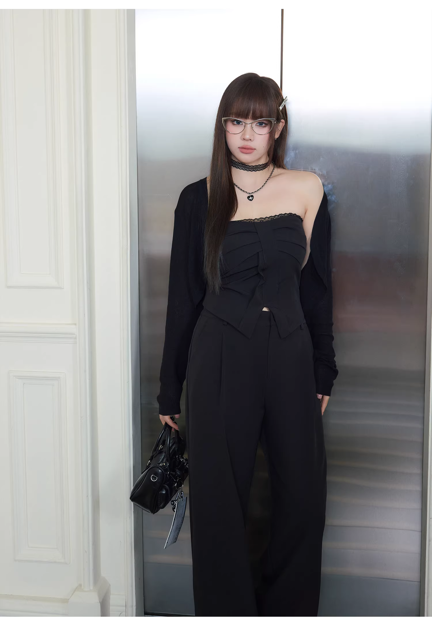 - Quần áo thời trang cỡ lớn dành cho phụ nữ có thân hình đầy đặn, bộ đồ tôn dáng với áo ống thời trang và quần âu đen.