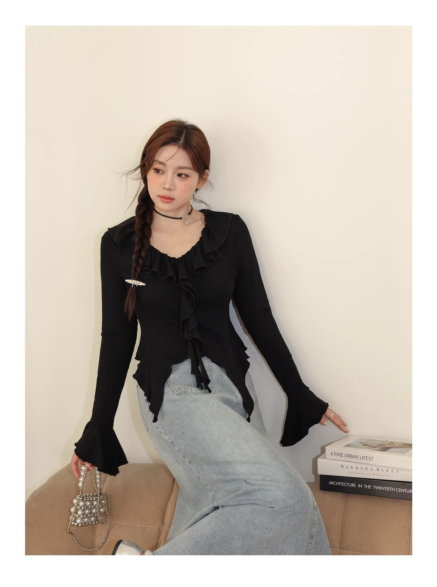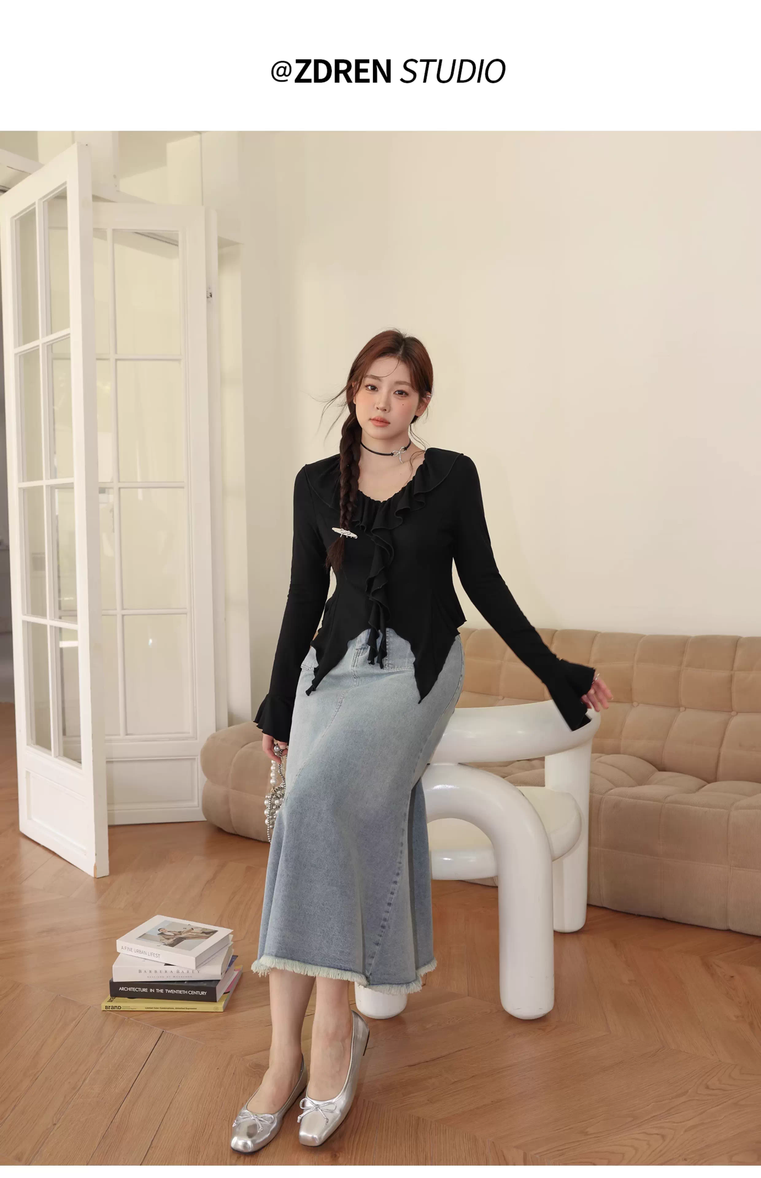 Quần áo thu đông cho nữ cỡ lớn, bộ đồ tôn dáng, áo kiểu độc đáo và sành điệu với chân váy denim đuôi cá.