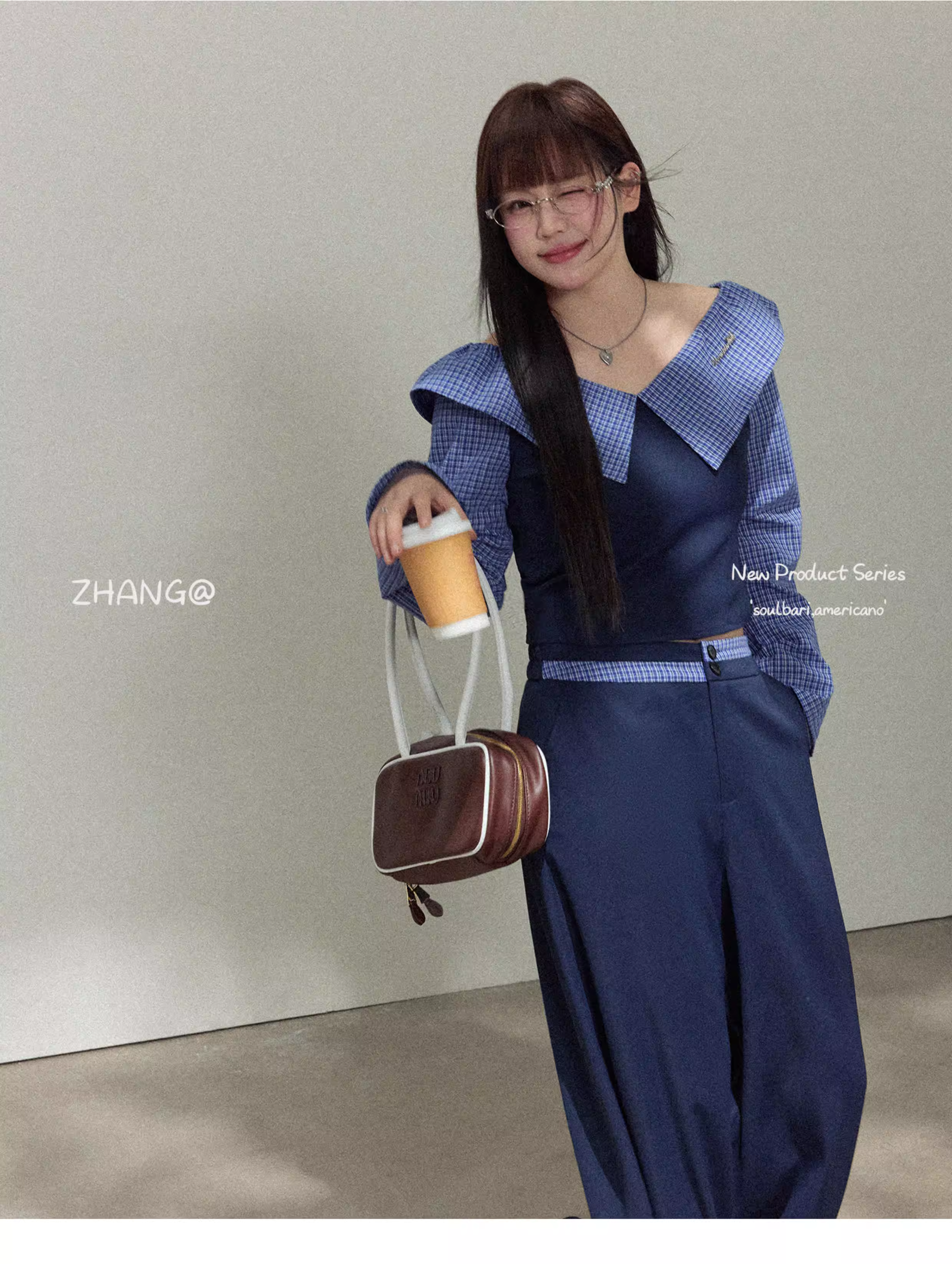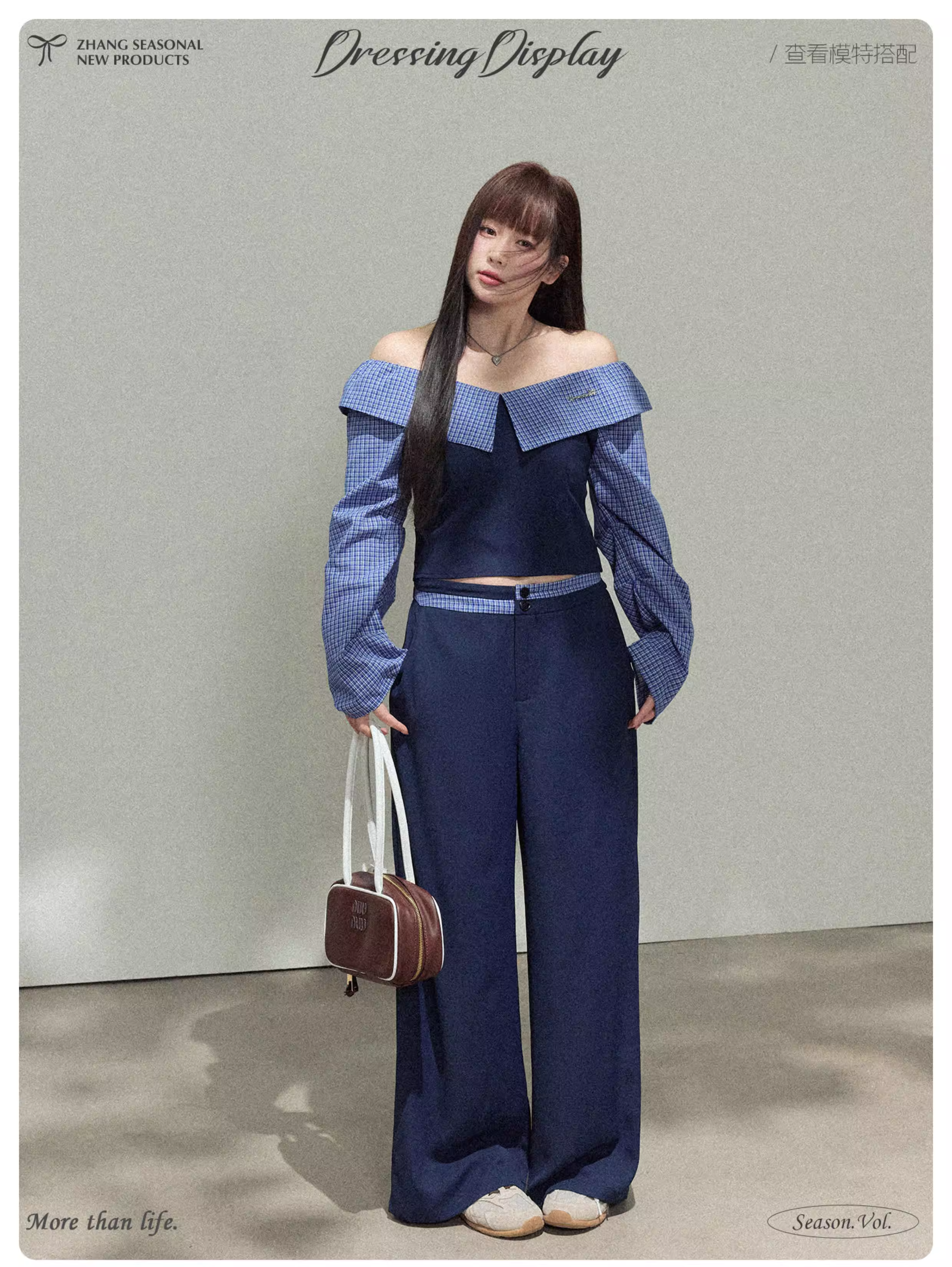 - Quần áo thu đông cho nữ cỡ lớn: Bộ trang phục tôn dáng với áo phối họa tiết ca rô tinh tế và quần ống rộng lưng cao.
