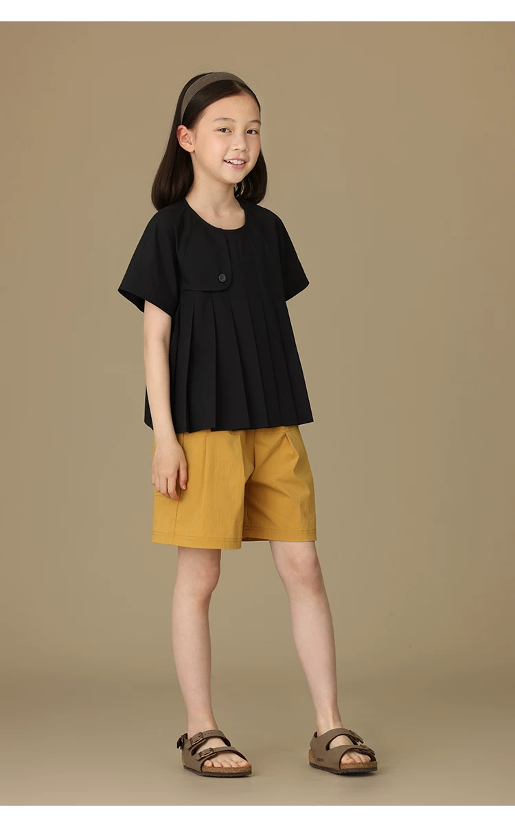 - Quần áo trẻ em áo sơ mi ngắn tay màu đen đơn giản cao cấp dành cho trẻ lớn hơn bé gái mùa hè kiểu dáng mỏng