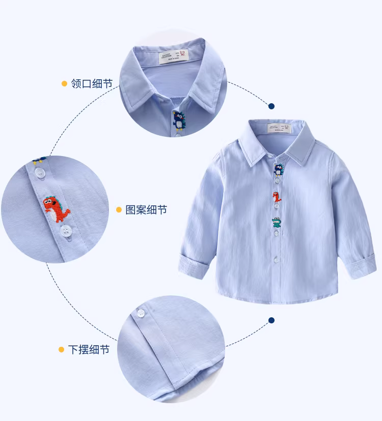 - Quần áo trẻ em áo sơ mi trẻ em 2025 quần áo mùa xuân mới bé trai thời trang hoạt hình cổ áo kiểu dáng áo thun bé trai tay dài