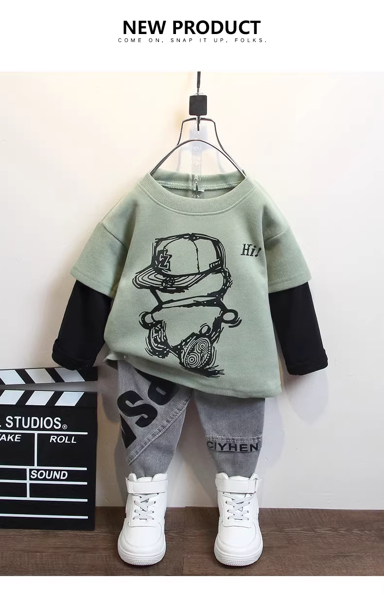 - Quần áo trẻ em bé trai bộ xuân 2025 kiểu Hàn Quốc thời thượng năng động xuân thu thời trang và đẹp trai
