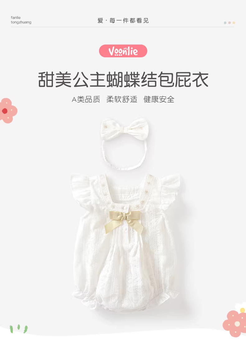 - Quần áo trẻ em Fanli mùa hè kiểu dáng mỏng, bộ liền thân sơ sinh cho bé gái, bộ liền thân cho bé đủ tháng trăm ngày, bộ liền thân mùa hè