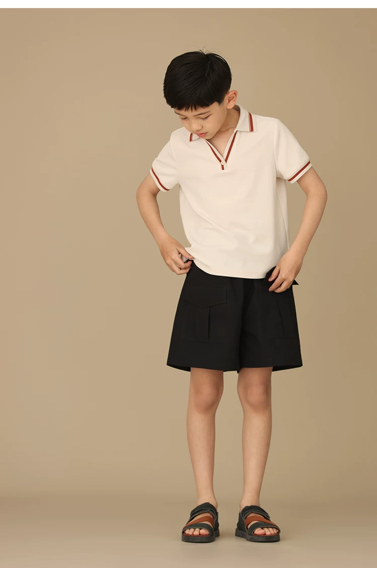 - Quần áo trẻ em Hazi Mùa hè Mới về Màu đen Thoáng mát Quần cargo túi lớn Phong cách cha con Quần short năm phần kiểu giản dị