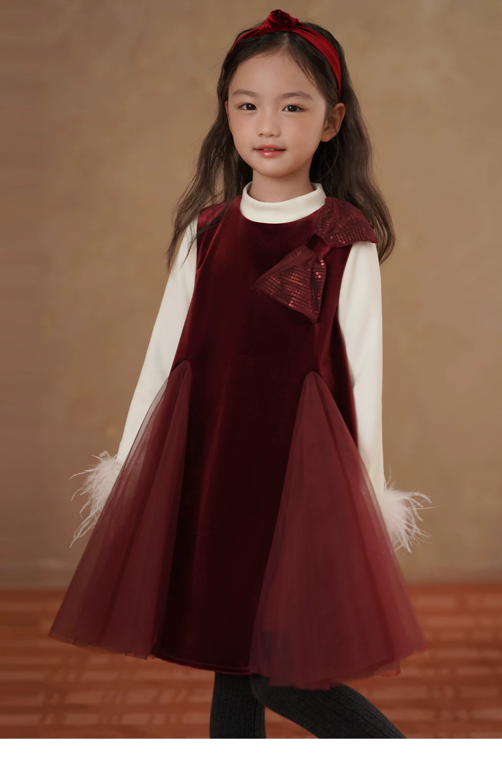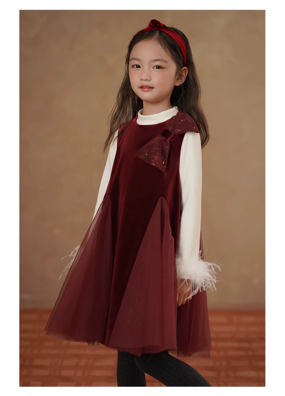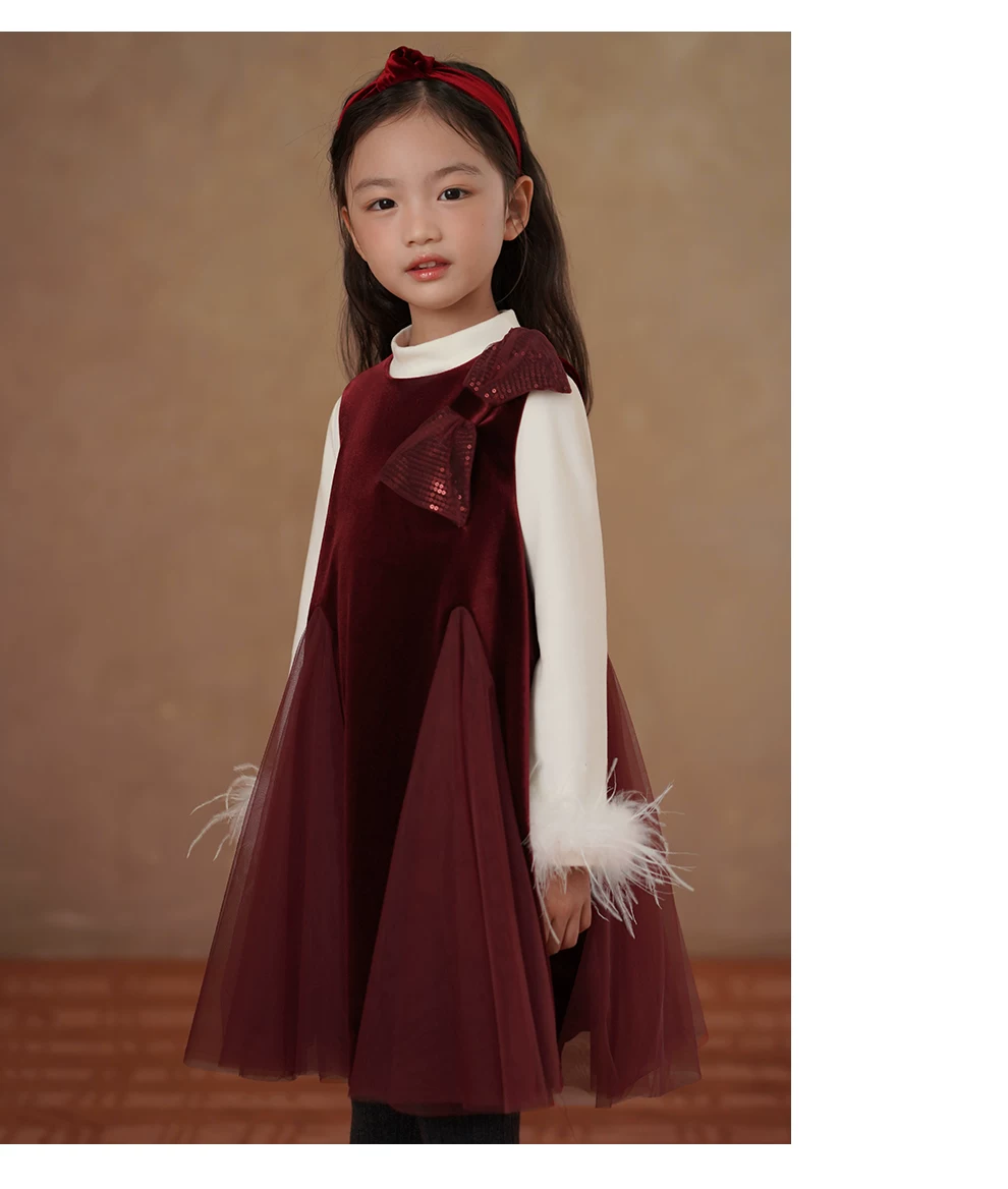 - Quần áo trẻ em mùa đông dày dặn nhung đỏ váy dài trung bình váy vest bé gái váy đuôi cá