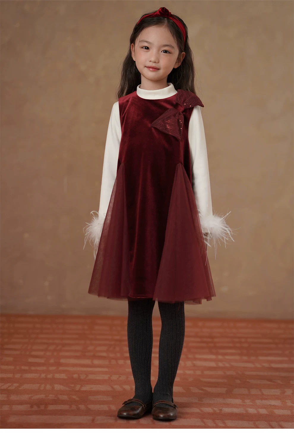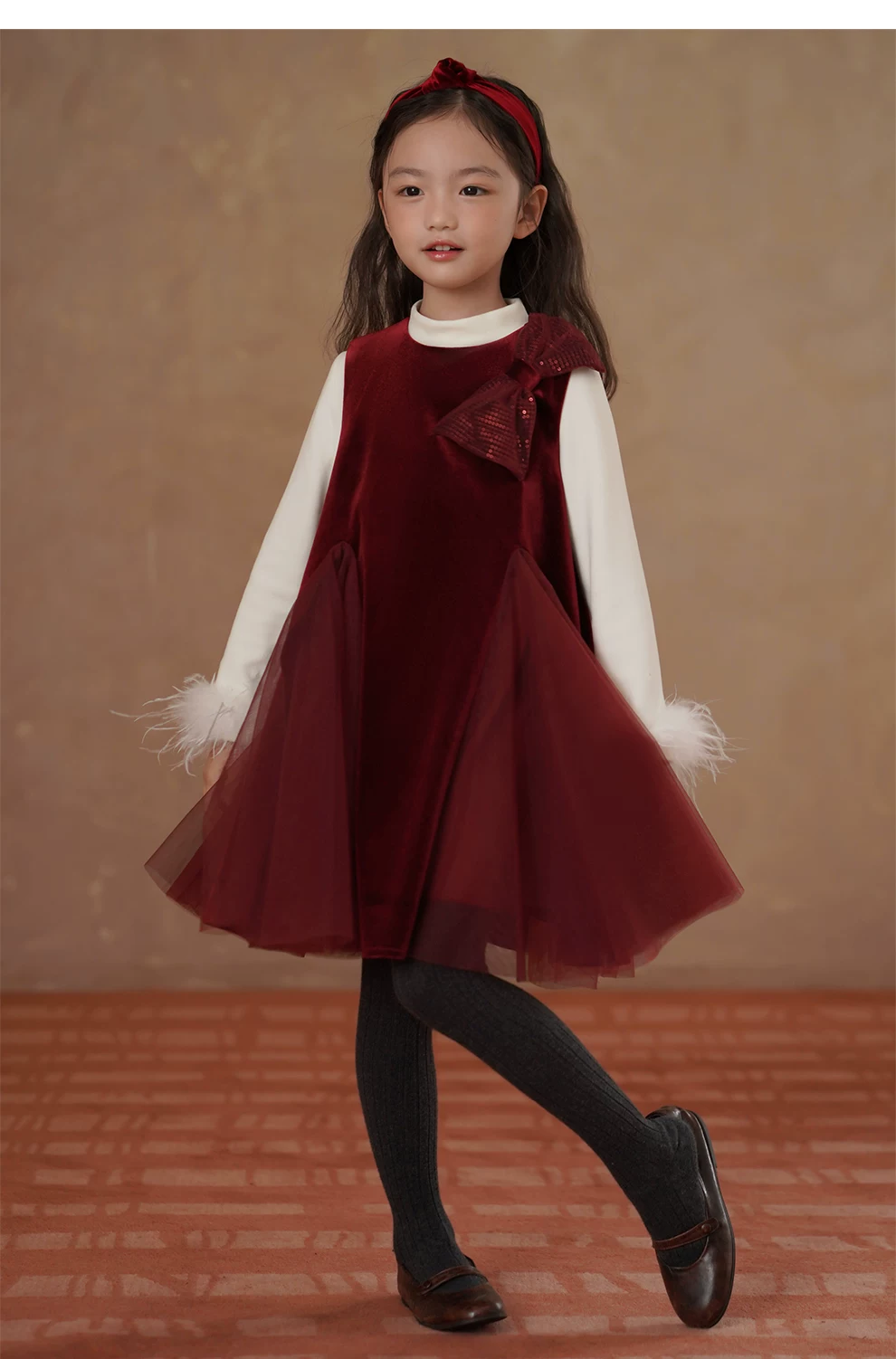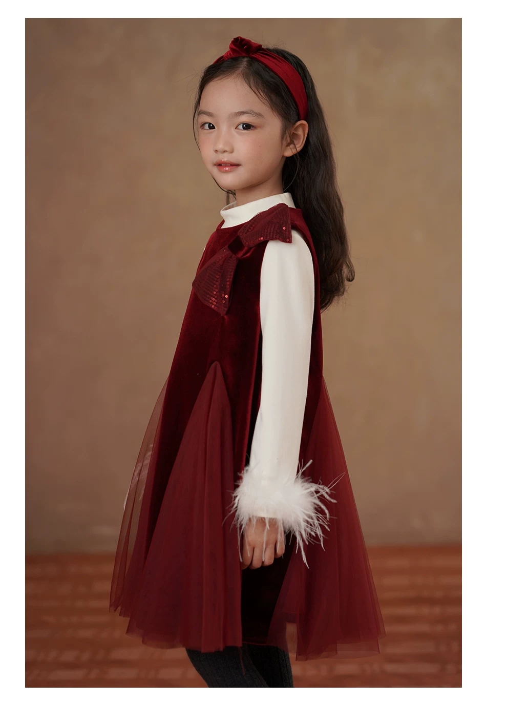 - Quần áo trẻ em mùa đông dày dặn nhung đỏ váy dài trung bình váy vest bé gái váy đuôi cá