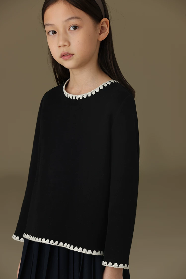 - Quần áo trẻ em mùa thu đông màu đen thủ công phối màu thêu vỏ sò viền kiểu dáng cha mẹ và con gái áo len dệt kim cho bé gái