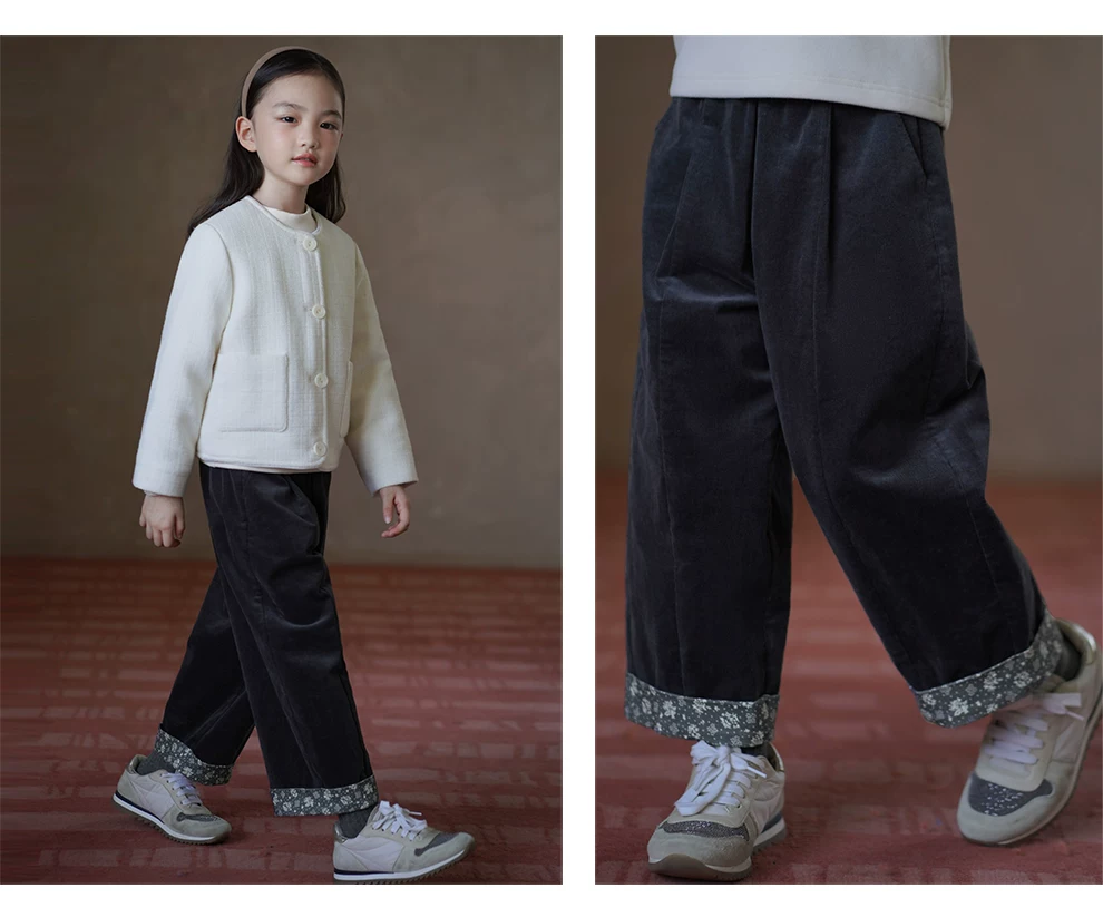 - Quần áo trẻ em mùa thu đông quần vải nhung kẻ màu xám quần ống thẳng dáng rộng dáng rộng quần cà rốt có cạp cho bé gái