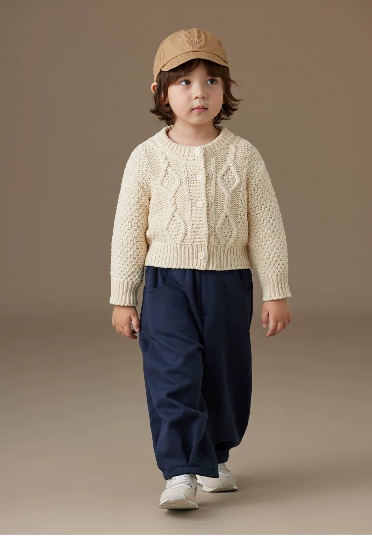 - Quần áo trẻ em mùa xuân thu áo khoác dáng rộng màu mơ bé trai và bé gái áo len dệt kim phong cách cha mẹ và con cái