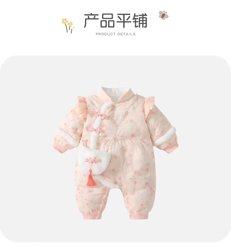 - Quần áo trẻ em, quần áo mùa đông, bộ liền quần kiểu Trung Quốc có lót lông cừu và chần bông cho bé gái sơ sinh, trang phục đi chơi trong tuần trăng khuyết và trăm ngày, trang phục mùa đông.