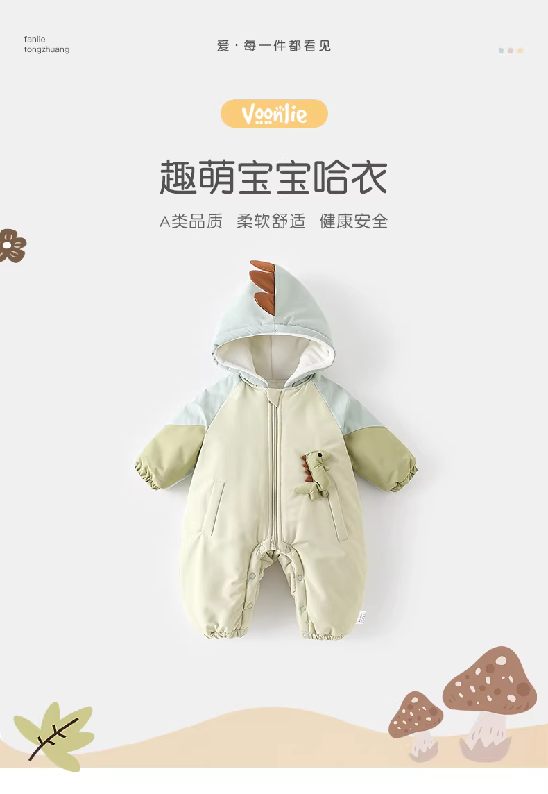 - Quần áo trẻ em, quần áo mùa đông, bộ liền thân lót lông cừu và may chần cho bé trai sơ sinh, bộ liền thân có mũ trùm đầu giữ ấm khi đi chơi ngoài trời cho bé một tháng tuổi.