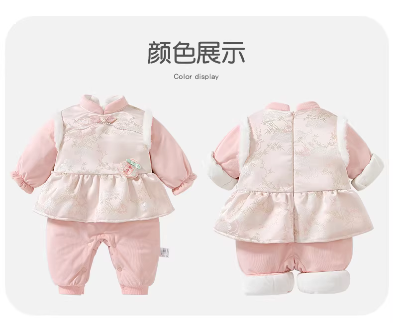 - Quần áo trẻ em, quần áo mùa đông, quần áo liền thân cho bé gái, quần áo cotton lót lông cừu và chần bông, trăng tròn, trăm ngày, năm mới, quần áo chúc mừng năm mới