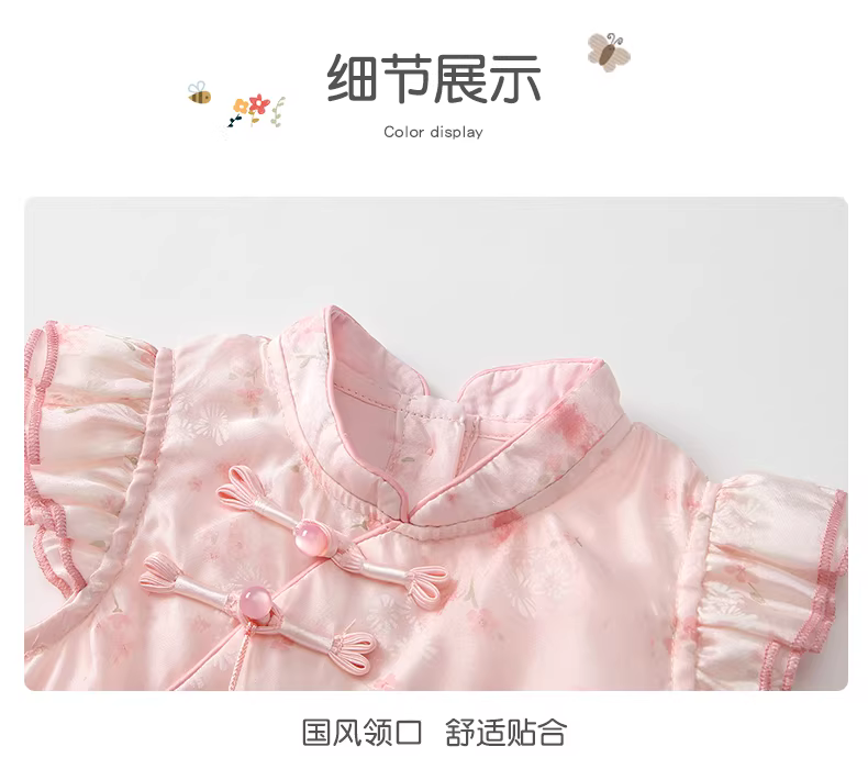 - Quần áo trẻ em, quần áo mùa hè, áo liền quần, bé gái sơ sinh, áo liền quần phong cách Trung Hoa, trăng tròn, 100 ngày, váy một tuổi, mùa hè