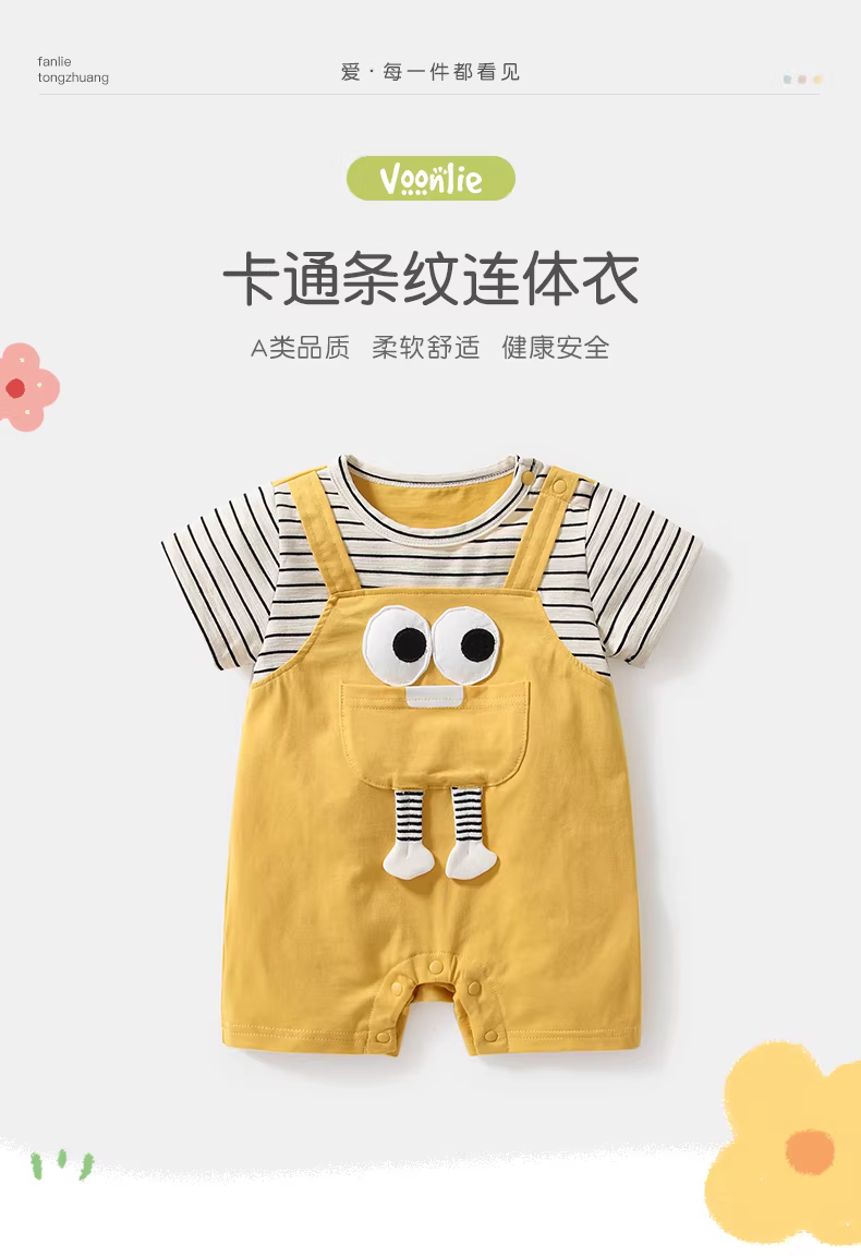 - Quần áo trẻ em, quần áo mùa hè, kiểu dáng mỏng, áo liền quần bé trai sơ sinh, đầy tháng, trăm ngày, áo liền quần ngắn tay siêu dễ thương, mùa hè