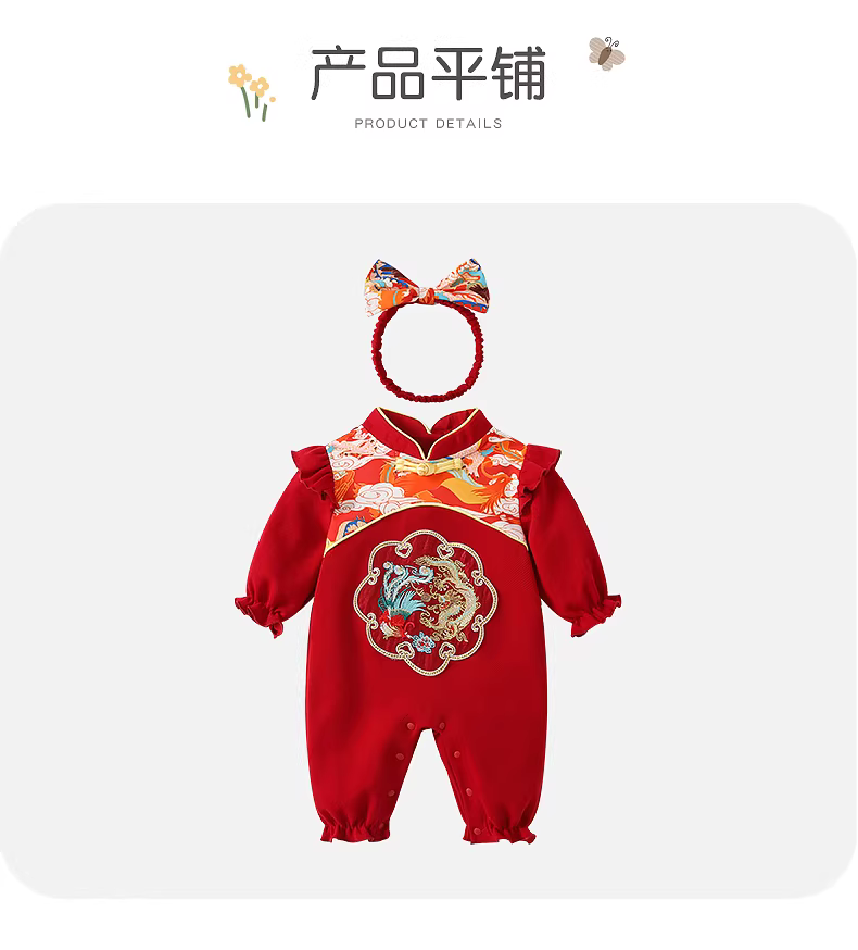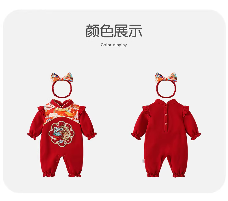 Quần áo trẻ em, trang phục mùa thu, áo liền quần bé gái, váy một tuổi, trang phục lễ kỷ niệm sinh nhật đầu tiên, lễ mừng trăng tròn, lễ kỷ niệm trăm ngày, trang phục năm mới, mùa xuân và mùa thu.