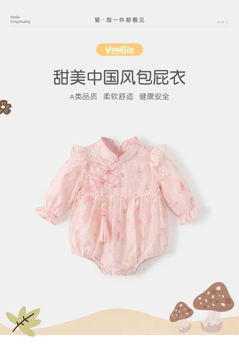 - Quần áo trẻ em trang phục mùa thu áo liền quần sơ sinh bé gái áo liền quần phong cách Trung Hoa công chúa trăng tròn trăm ngày áo liền quần mùa xuân và mùa thu