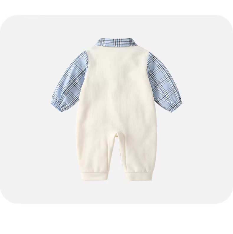- Quần áo trẻ em trang phục mùa thu bé trai sơ sinh áo liền quần trăng tròn trăm ngày đi chơi quý ông một tuổi áo liền quần quần áo bò mùa xuân và mùa thu