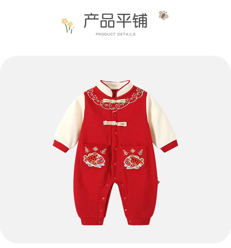 - Quần áo trẻ em trang phục mùa thu bé trai và bé gái sơ sinh phong cách Trung Hoa áo liền quần trăng tròn trăm ngày váy sinh nhật đầu tiên áo liền quần mùa xuân và mùa thu